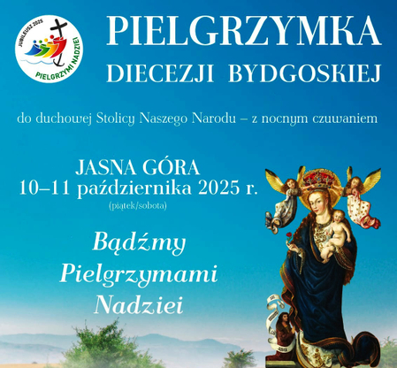 Z udziałem ok. 1 tys. wiernych i duchownych na Jasnej Górze, w dniach 10 – 11 października, odbyła się 14. Pielgrzymka Diecezji Bydgoskiej. „Bądźmy Pielgrzymami Nadziei” – to przesłanie pielgrzymki, która jest czasem modlitwy w intencji wspólnoty diecezjalnej, Kościoła i Polski, za rodziny i nowe powołania kapłańskie oraz zakonne. Z diecezjanami modlił się biskup Krzysztof Włodarczyk.