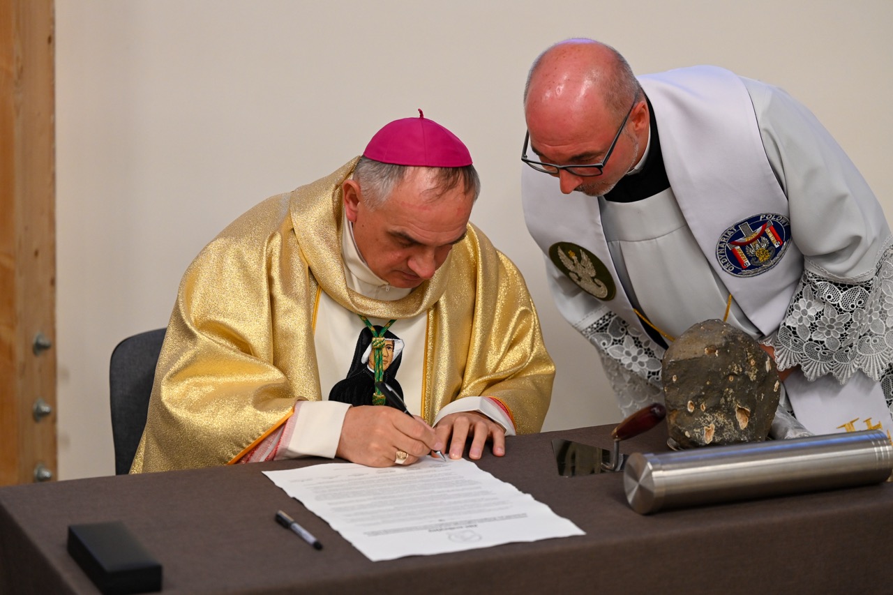 „Jesteśmy tu, ponieważ całym sercem czujemy, jak bardzo potrzeba nam Miłosierdzia Boga” – mówił 6 października biskup Krzysztof Włodarczyk, który dokonał wmurowania kamienia węgielnego pod przebudowę tymczasowej kaplicy na kościół św. Faustyny Kowalskiej w Bydgoszczy.