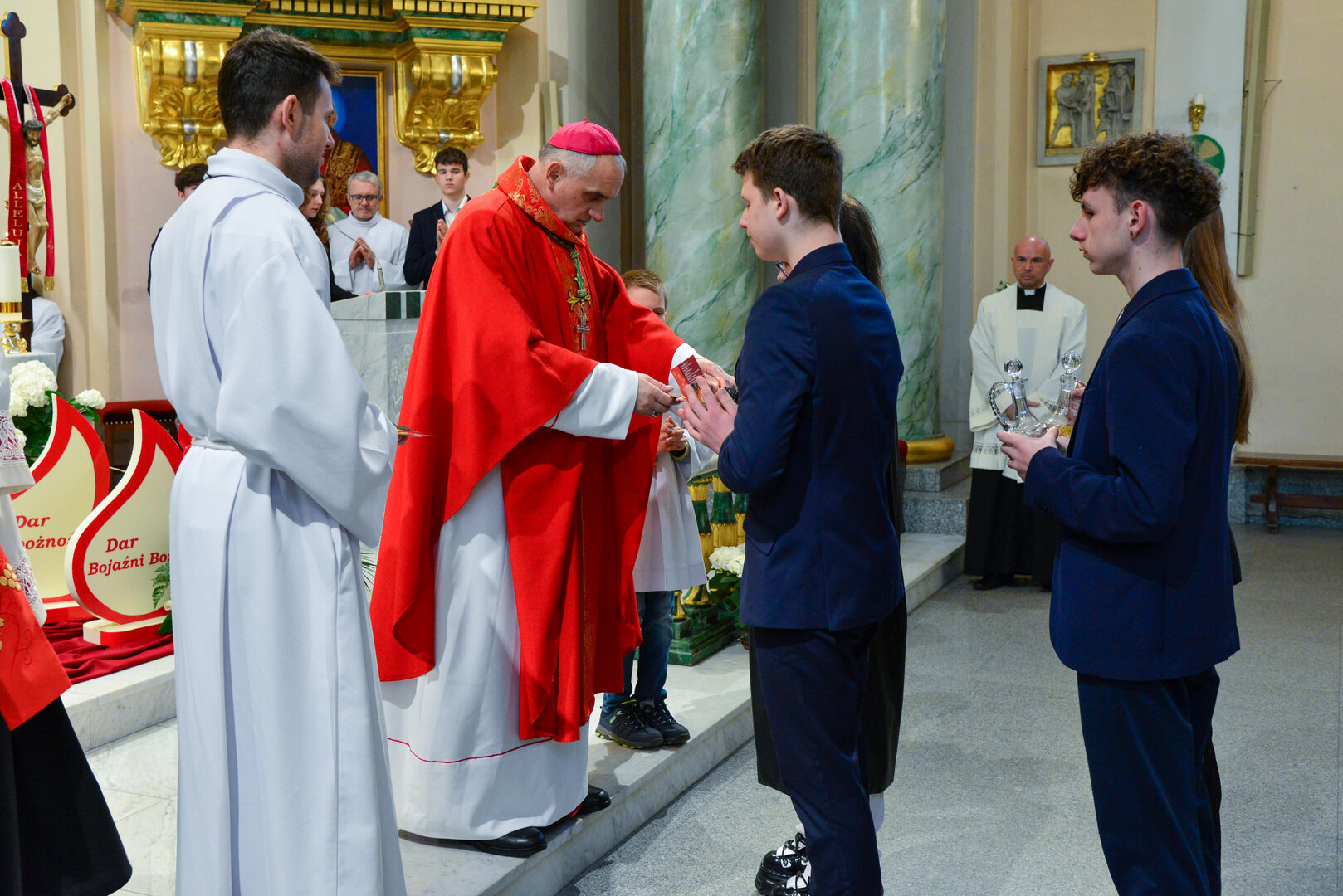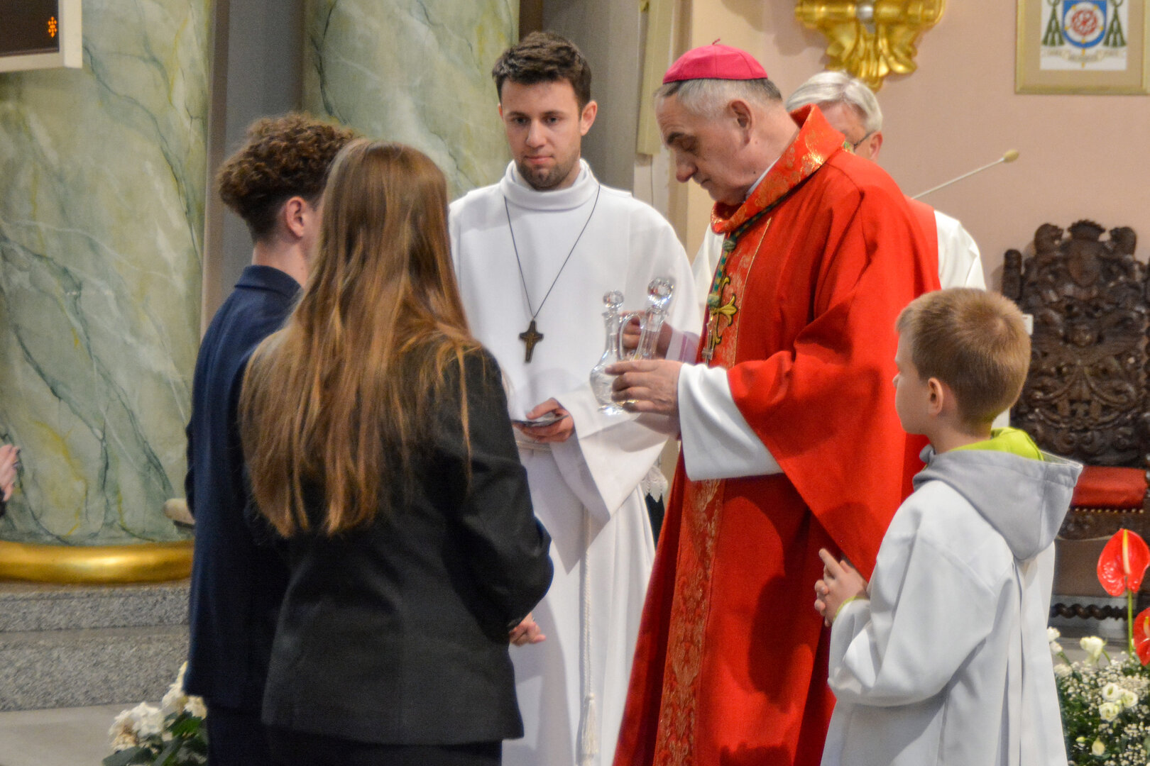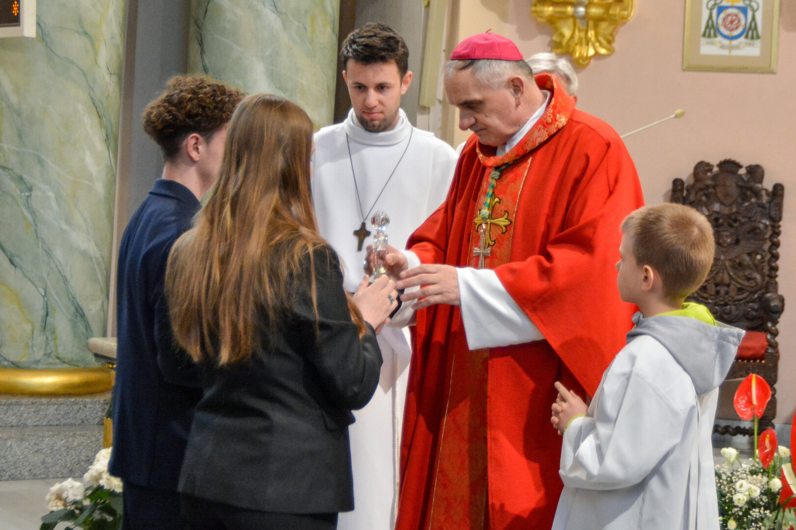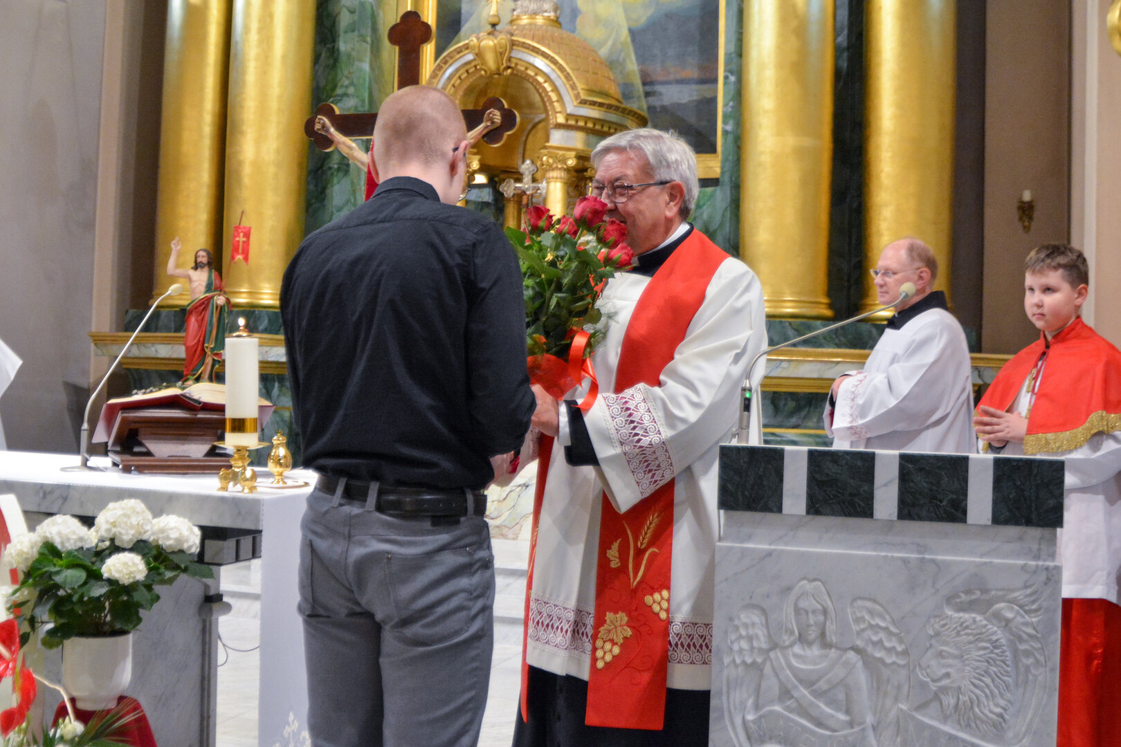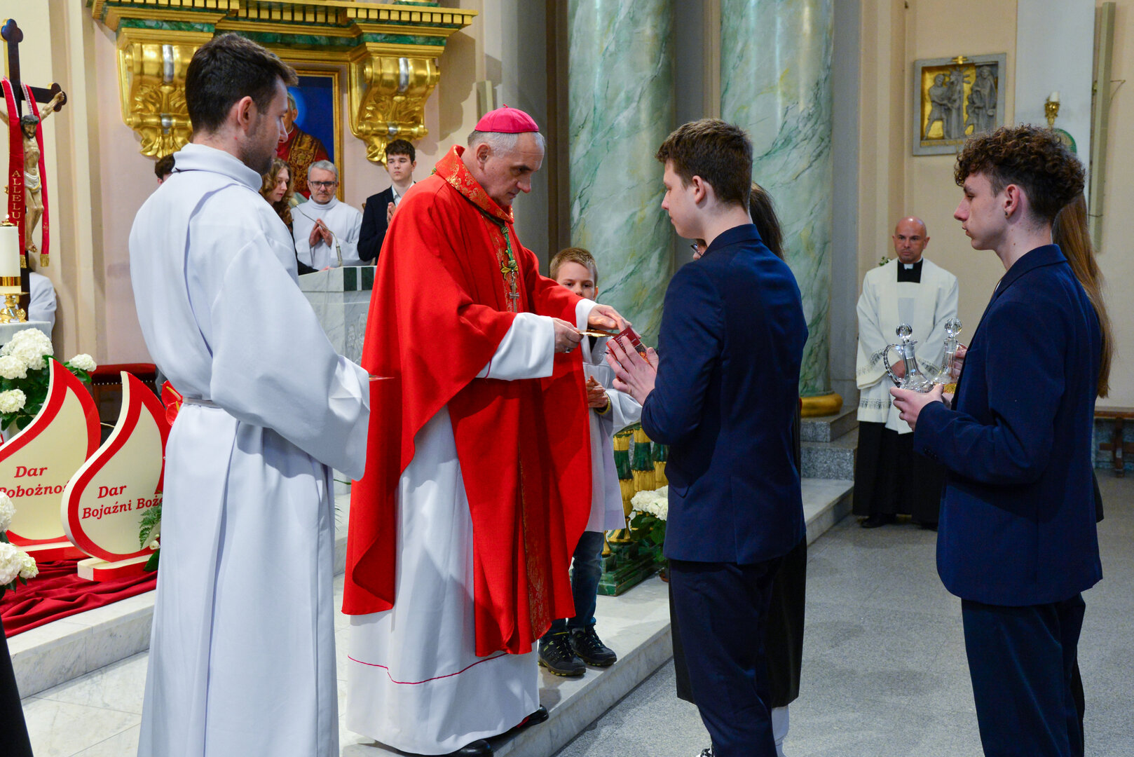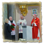 Podziękowanie ks. Danielowi za przygotowanie młodzieży, a bierzmowanym – za dar ołtarza w postaci kilku kompletów bielizny kielichowej.