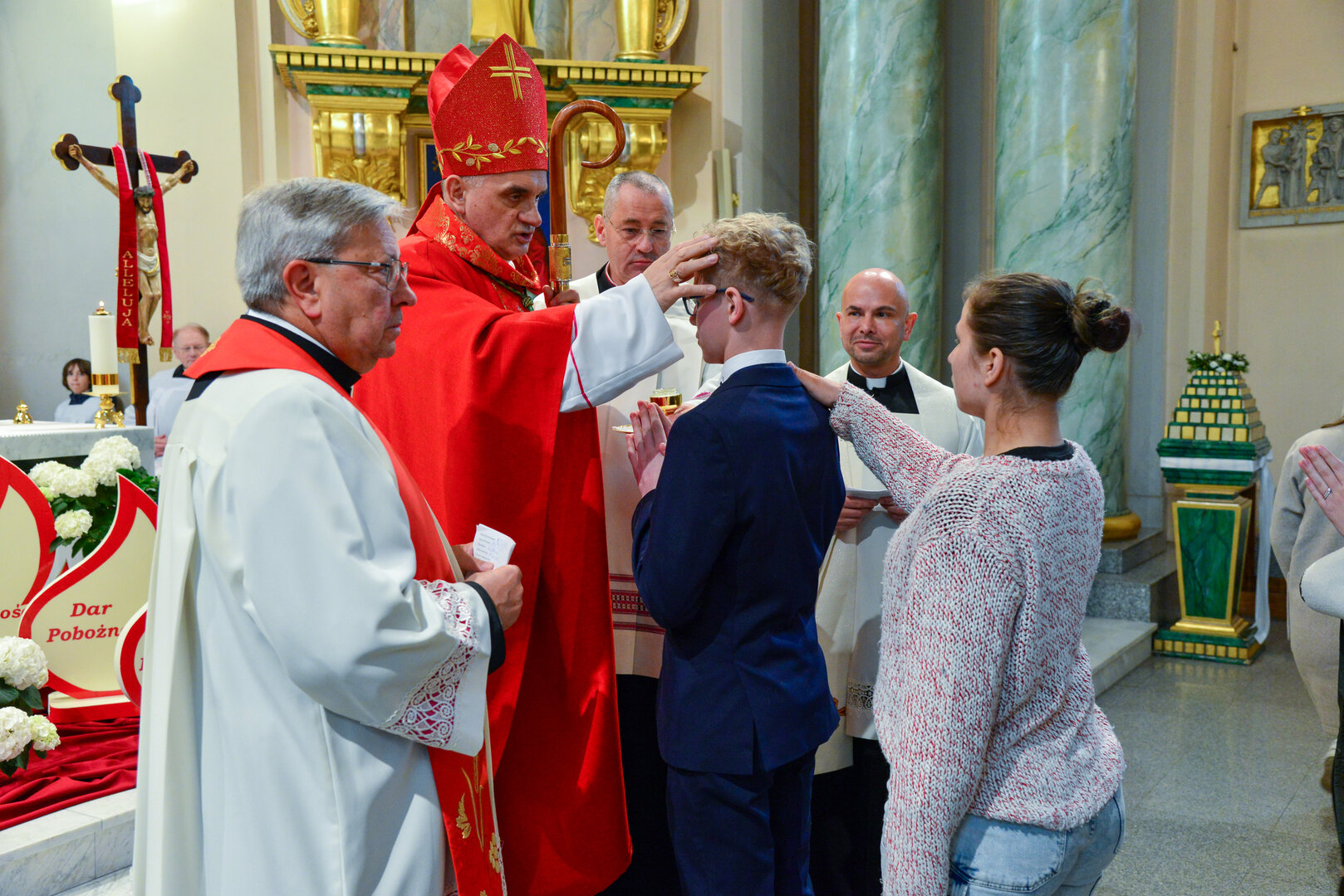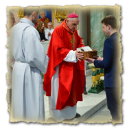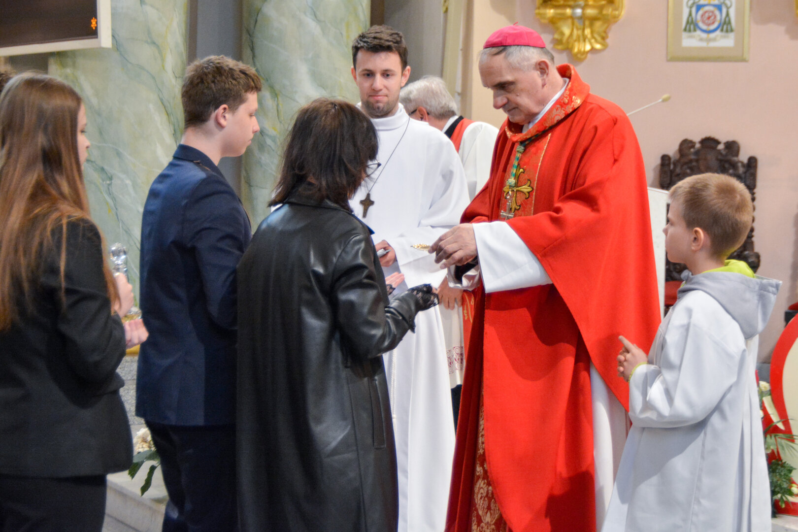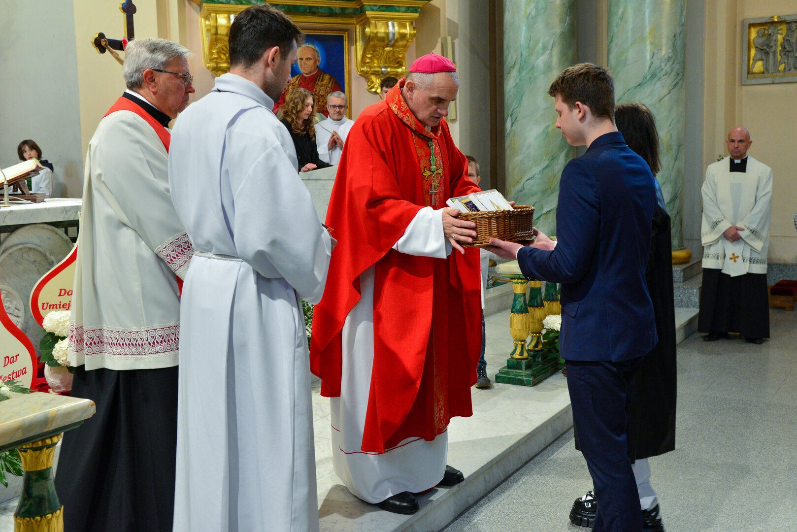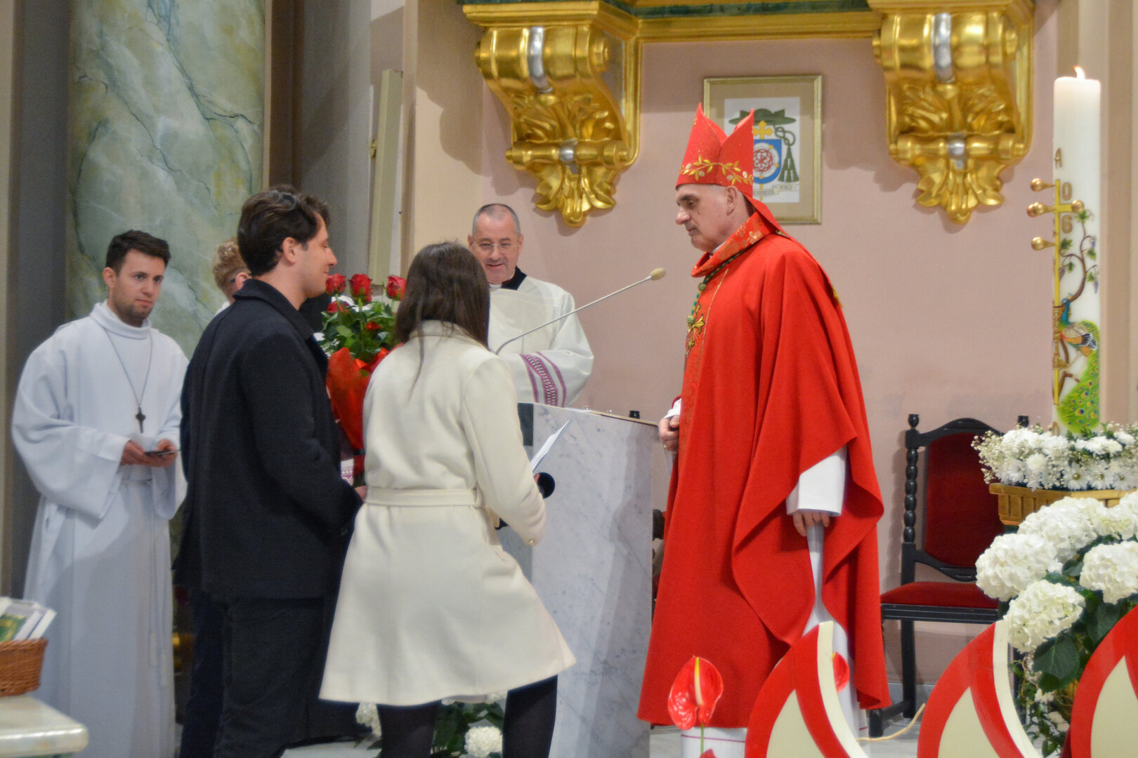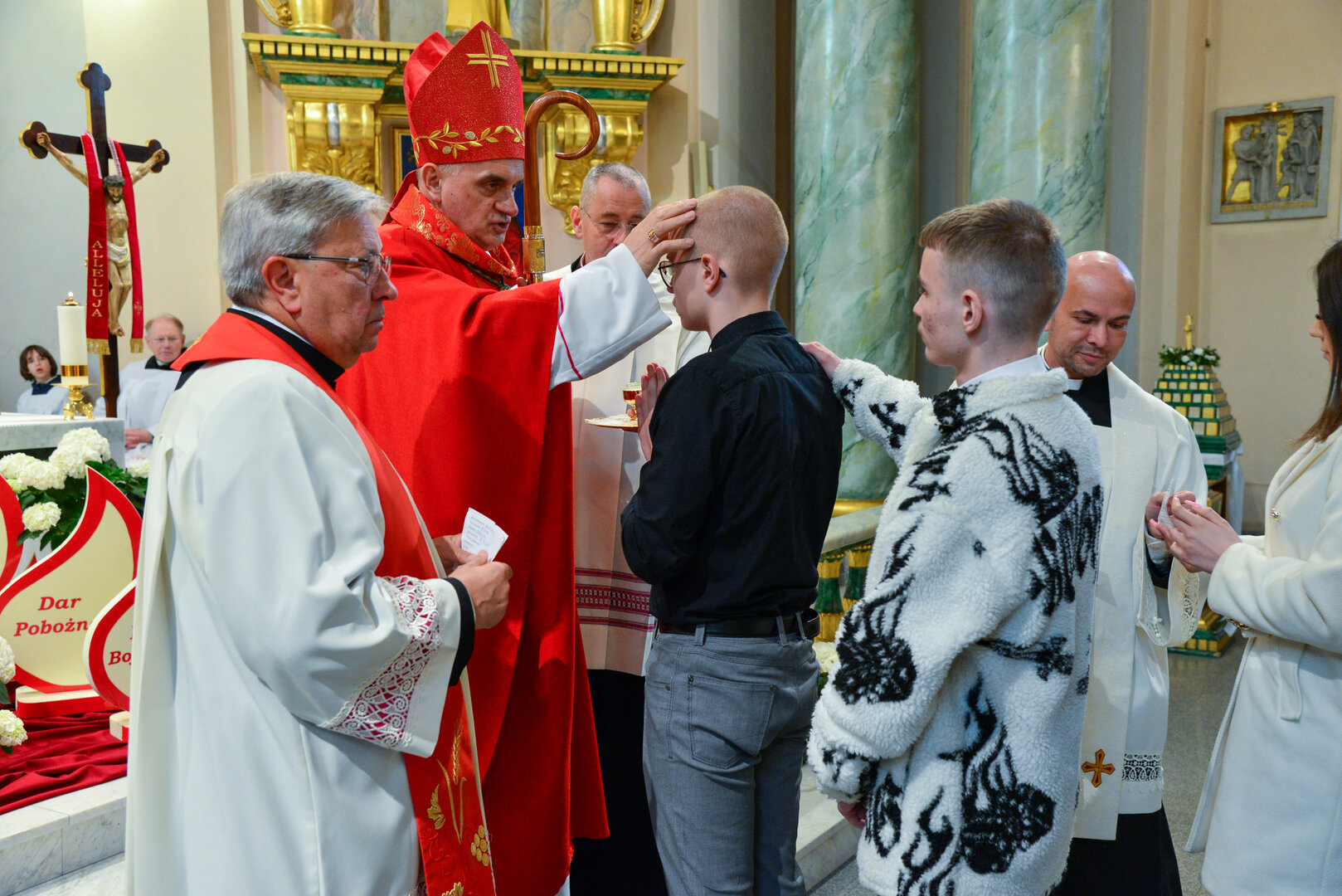 Podziękowanie ks. Danielowi za przygotowanie młodzieży, a bierzmowanym – za dar ołtarza w postaci kilku kompletów bielizny kielichowej.