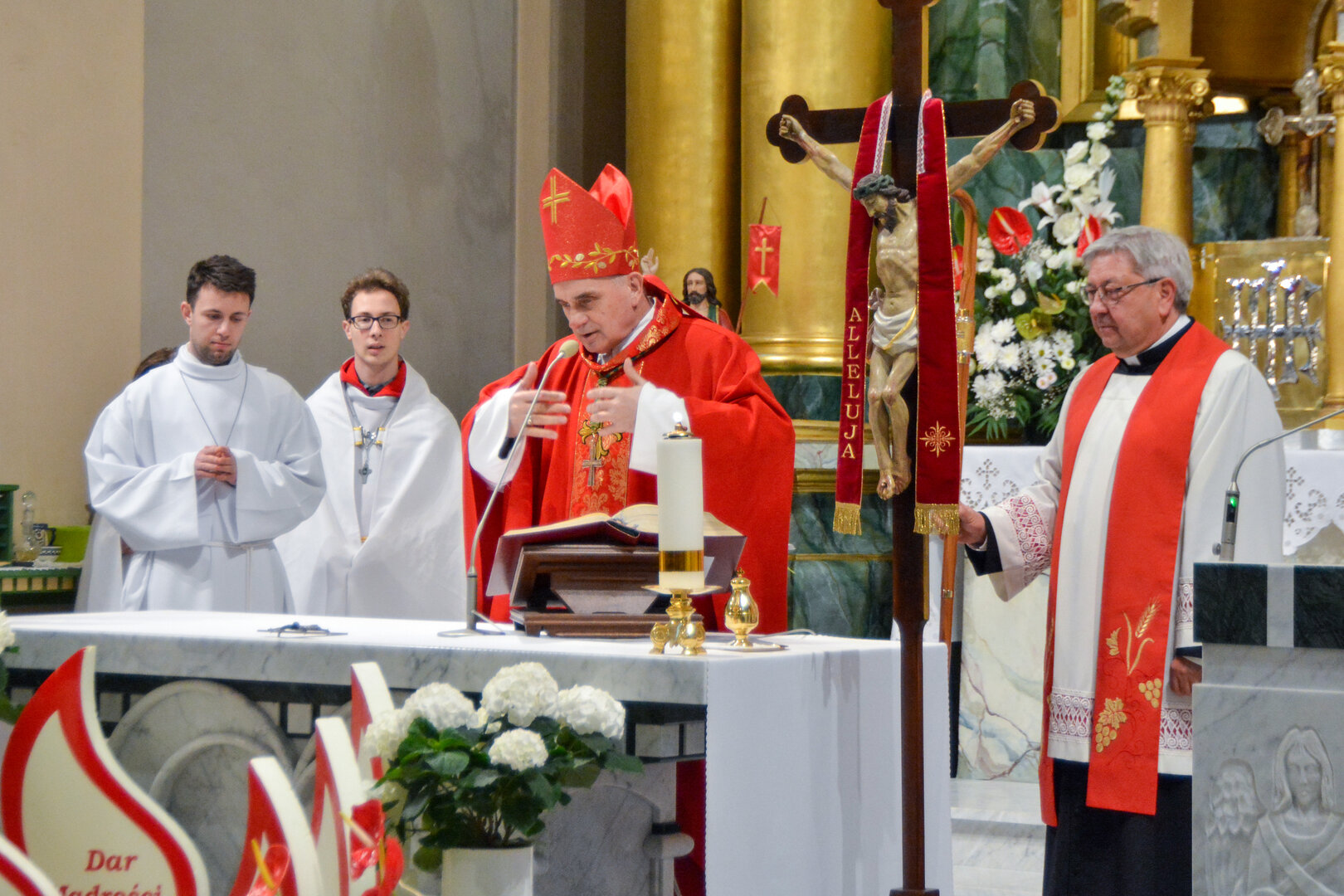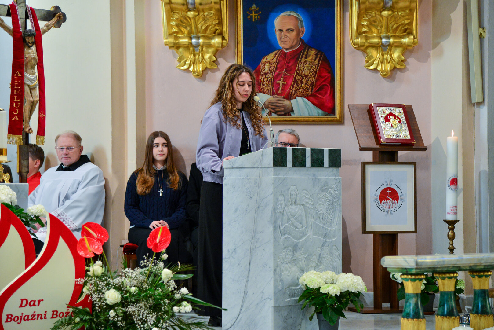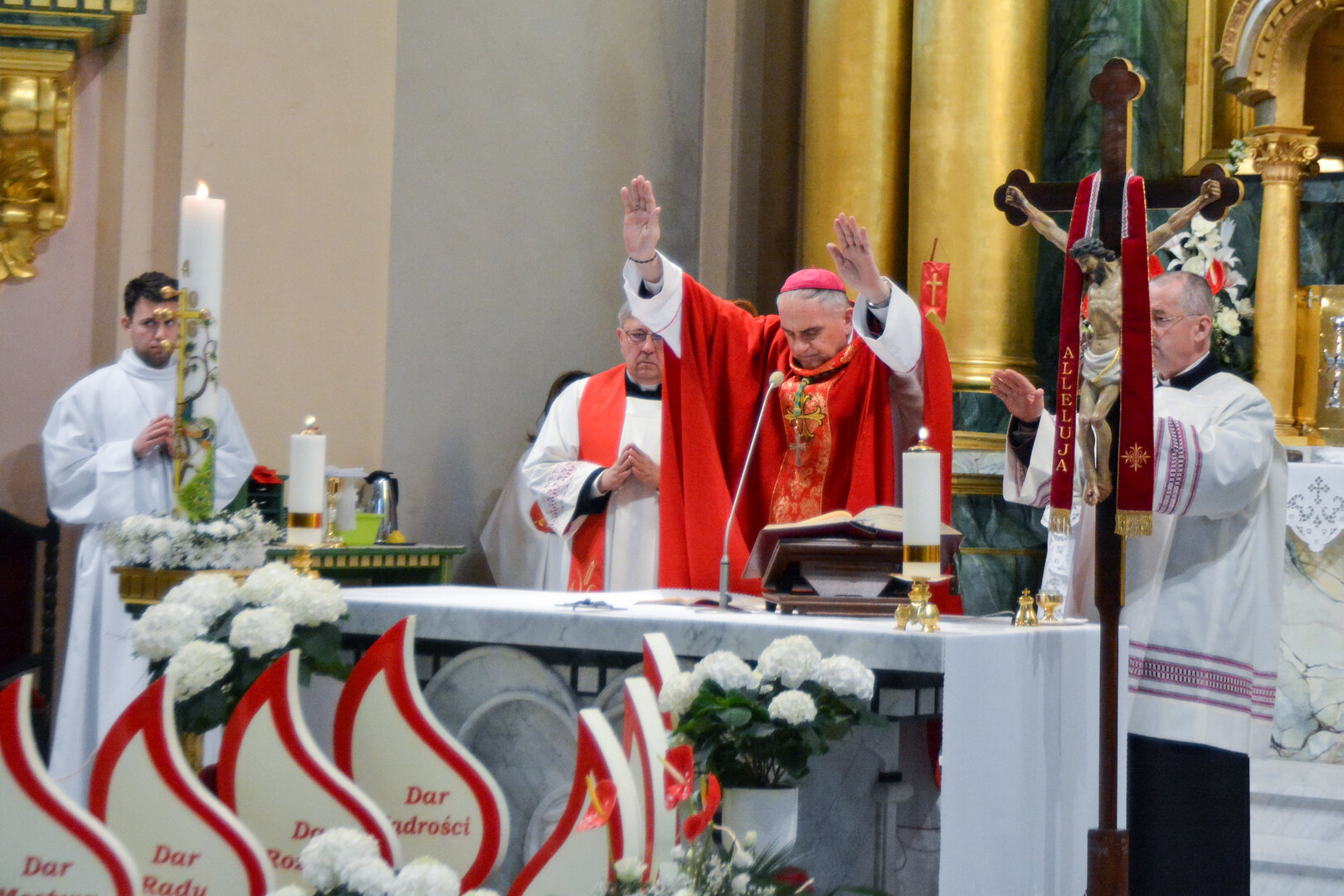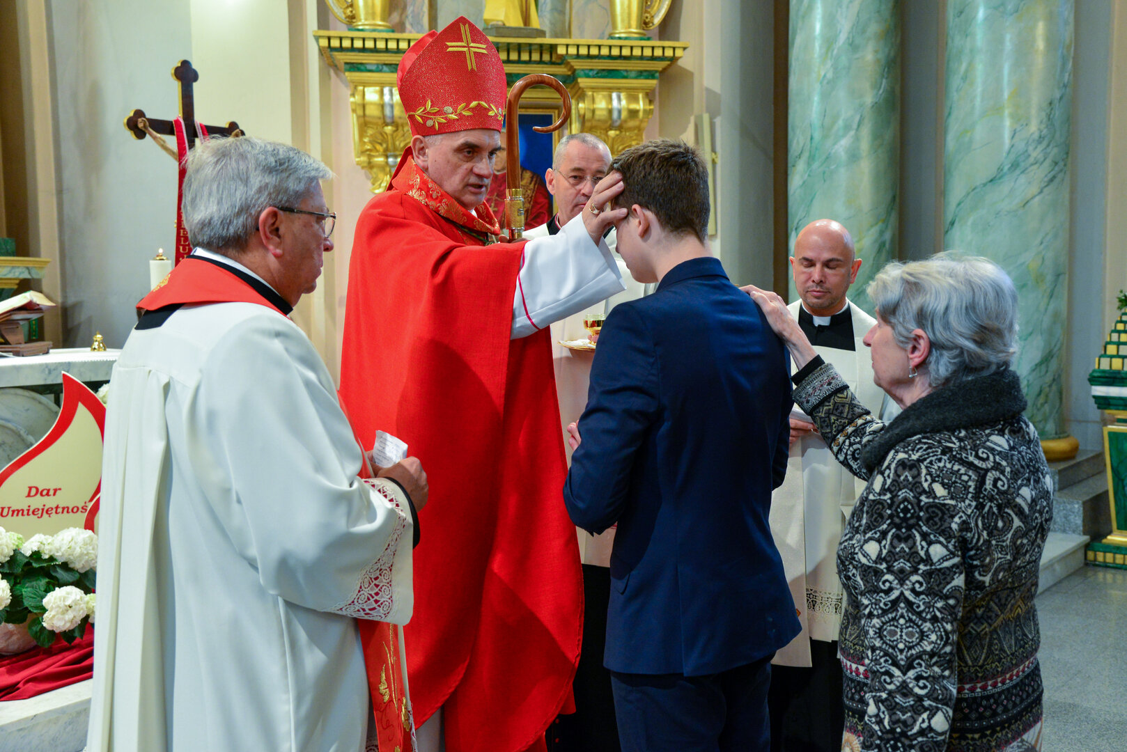 Podziękowanie ks. Danielowi za przygotowanie młodzieży, a bierzmowanym – za dar ołtarza w postaci kilku kompletów bielizny kielichowej.