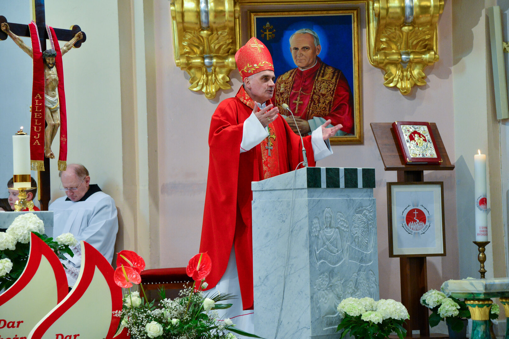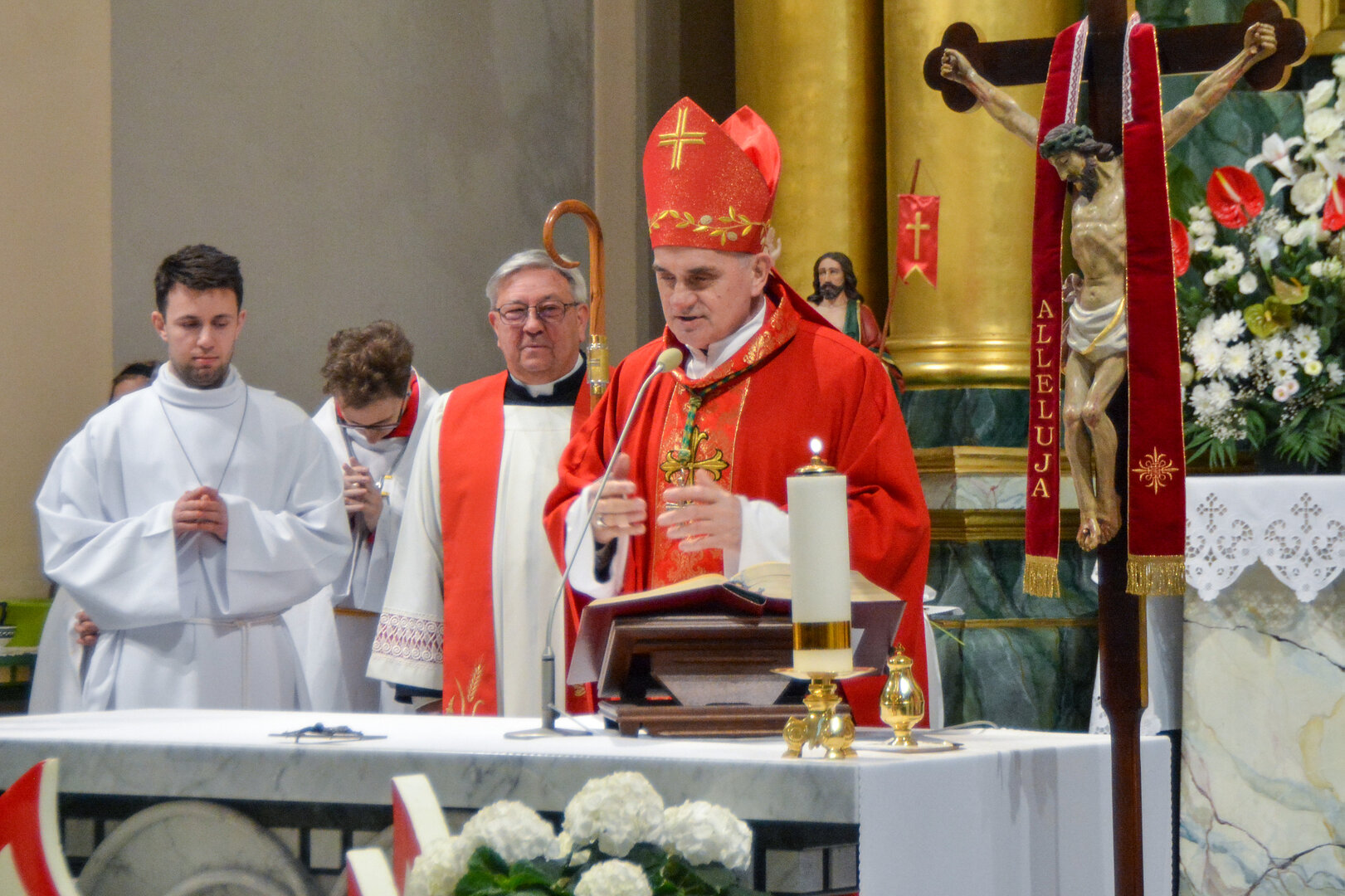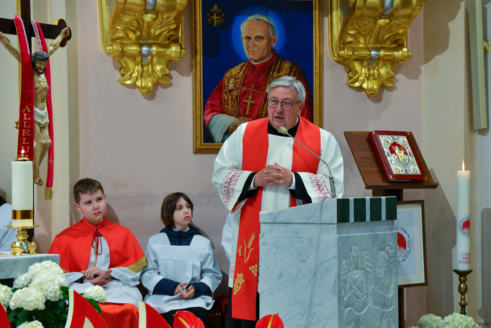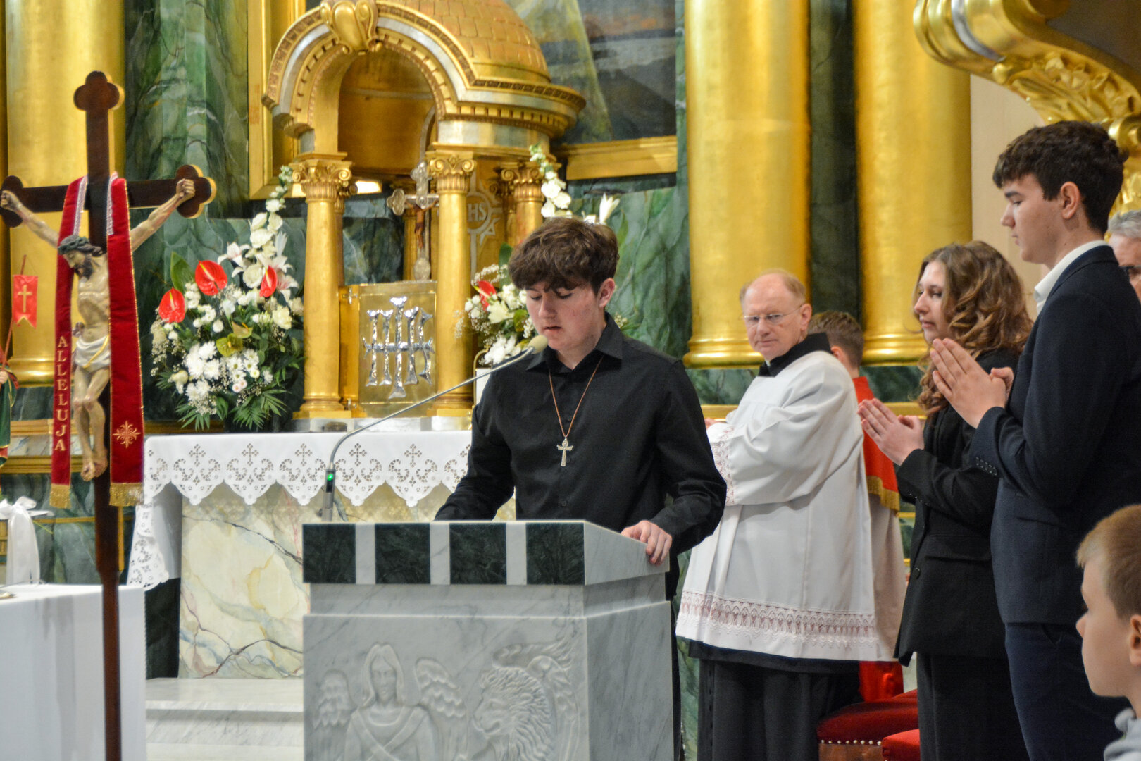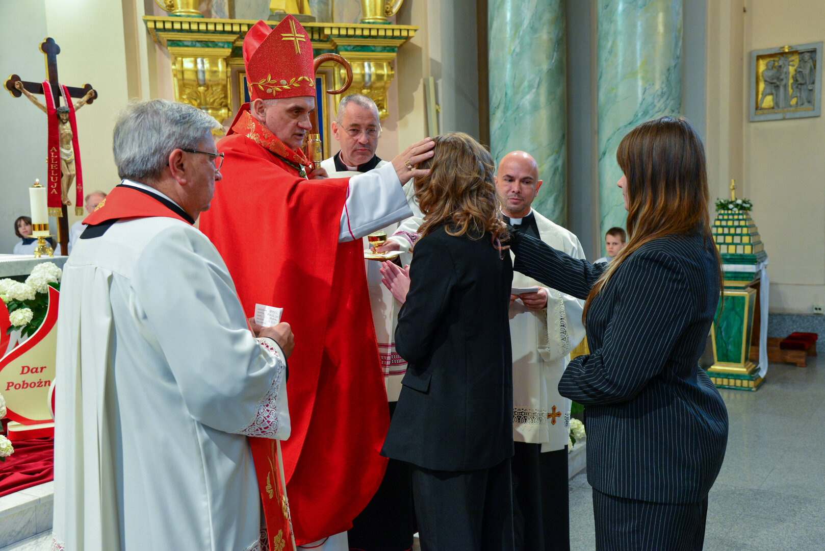 Podziękowanie ks. Danielowi za przygotowanie młodzieży, a bierzmowanym – za dar ołtarza w postaci kilku kompletów bielizny kielichowej.