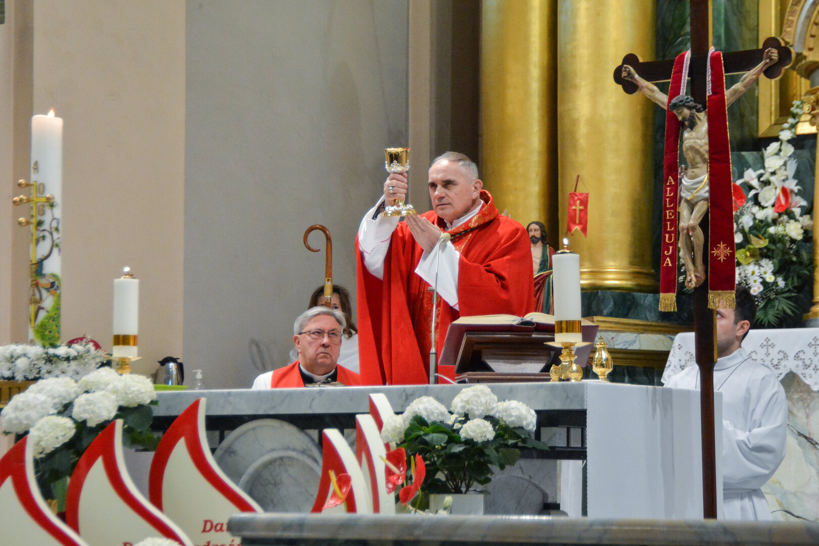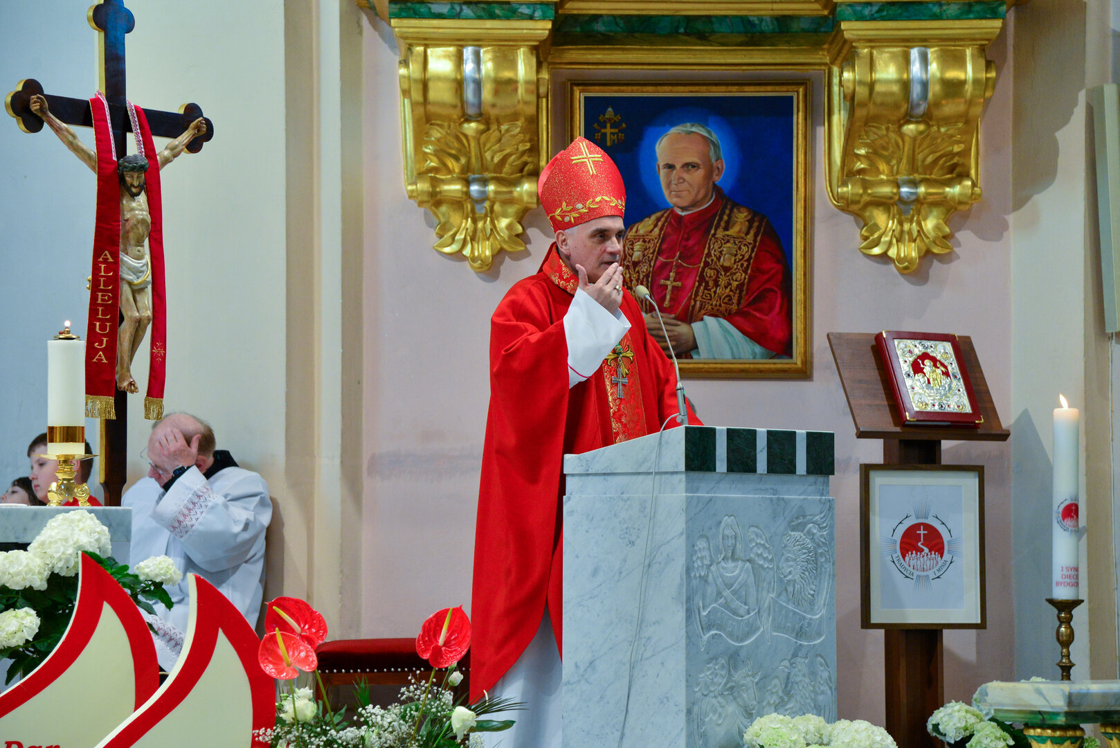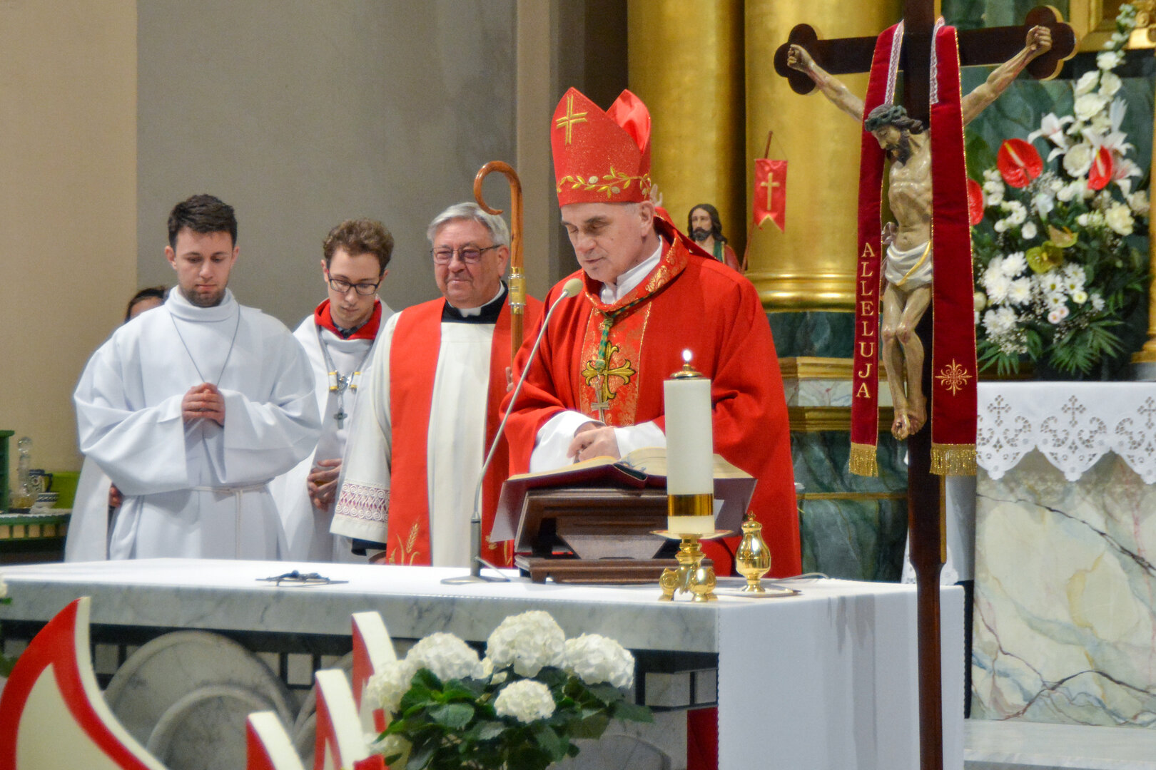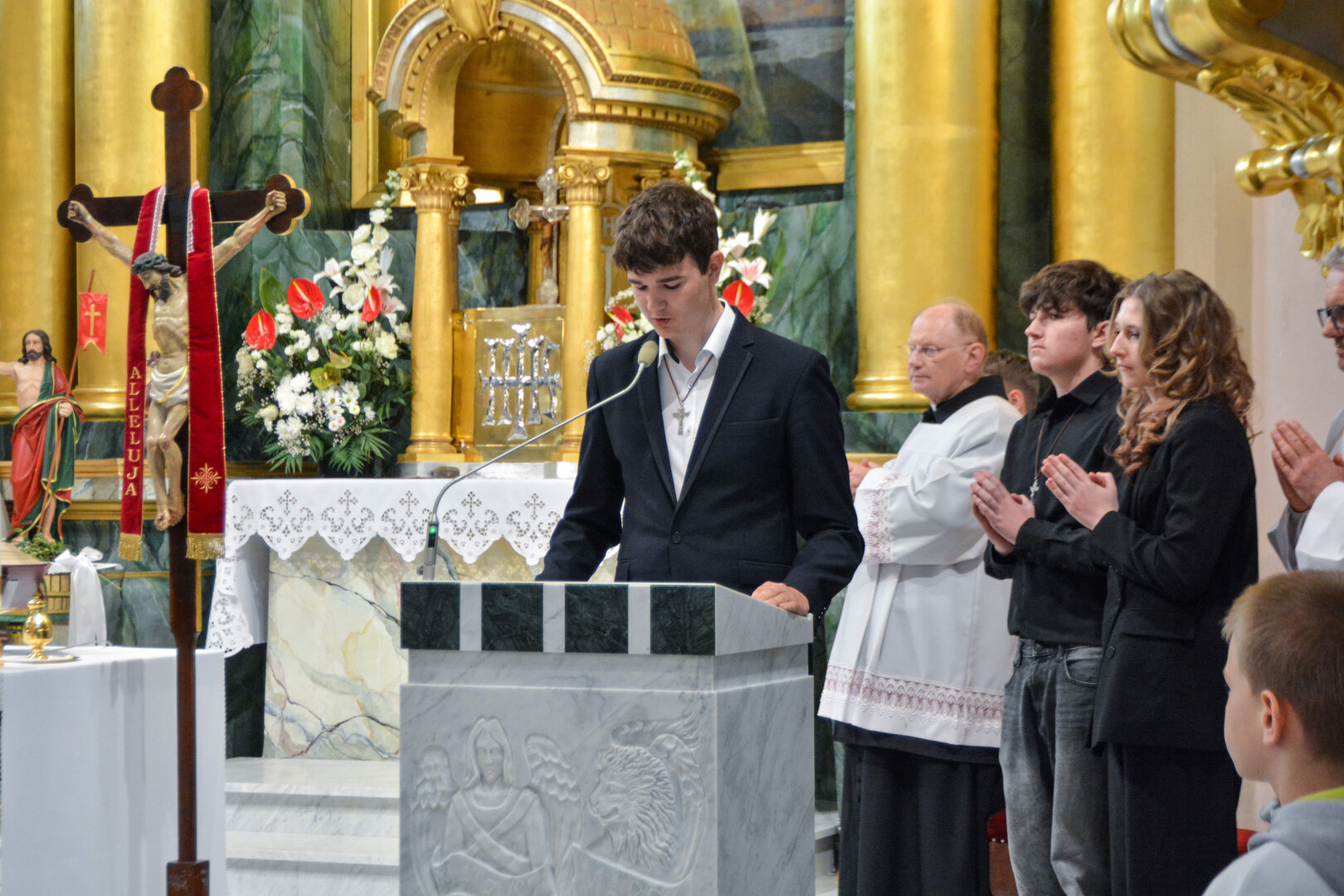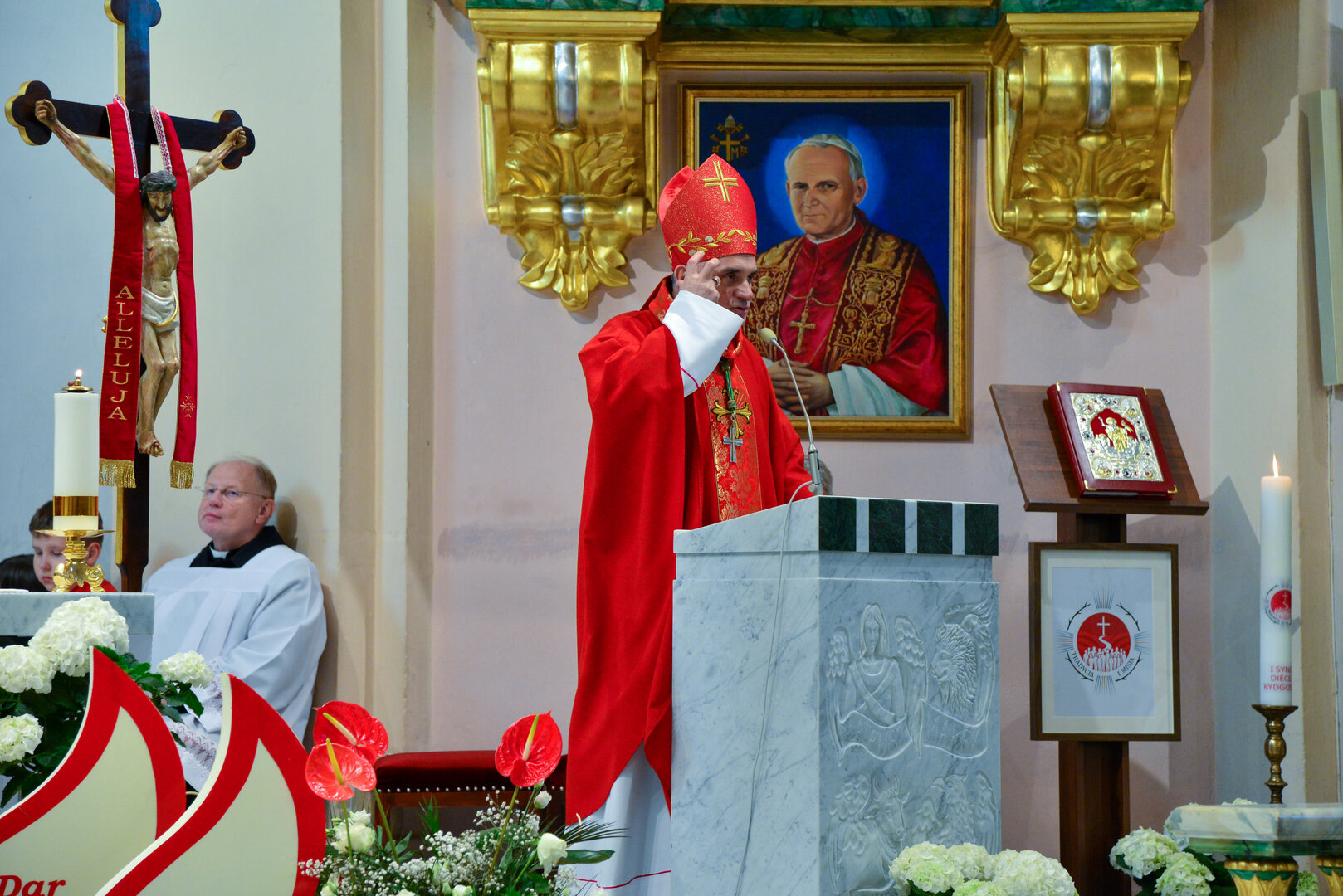 Podziękowanie ks. Danielowi za przygotowanie młodzieży, a bierzmowanym – za dar ołtarza w postaci kilku kompletów bielizny kielichowej.