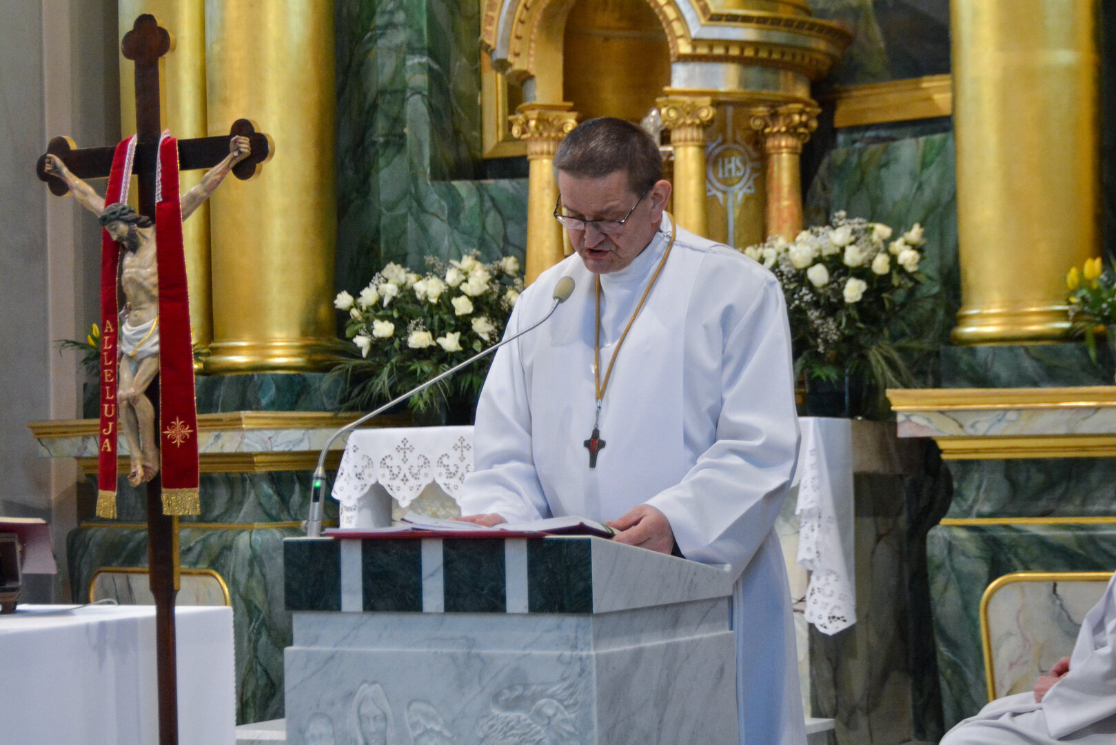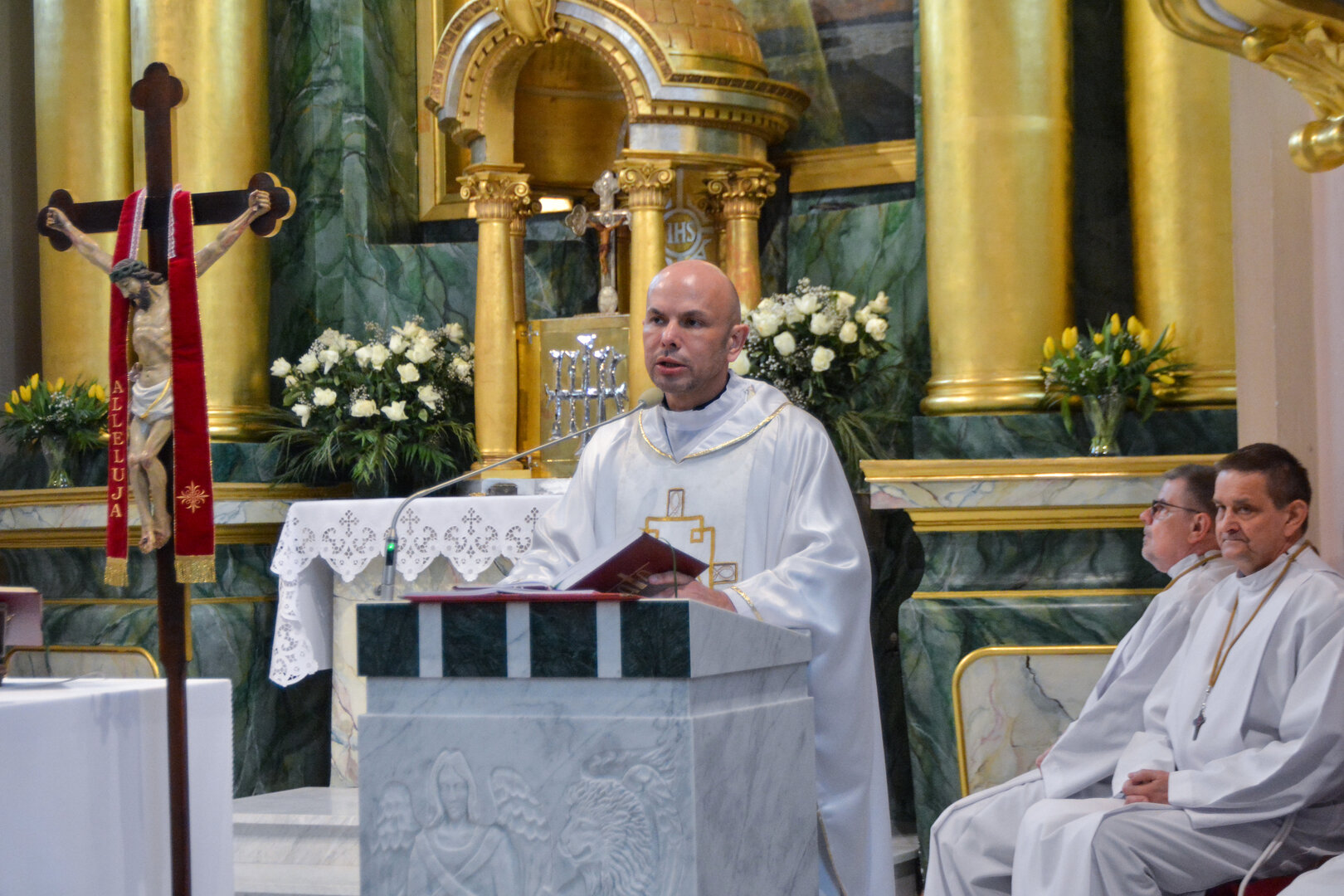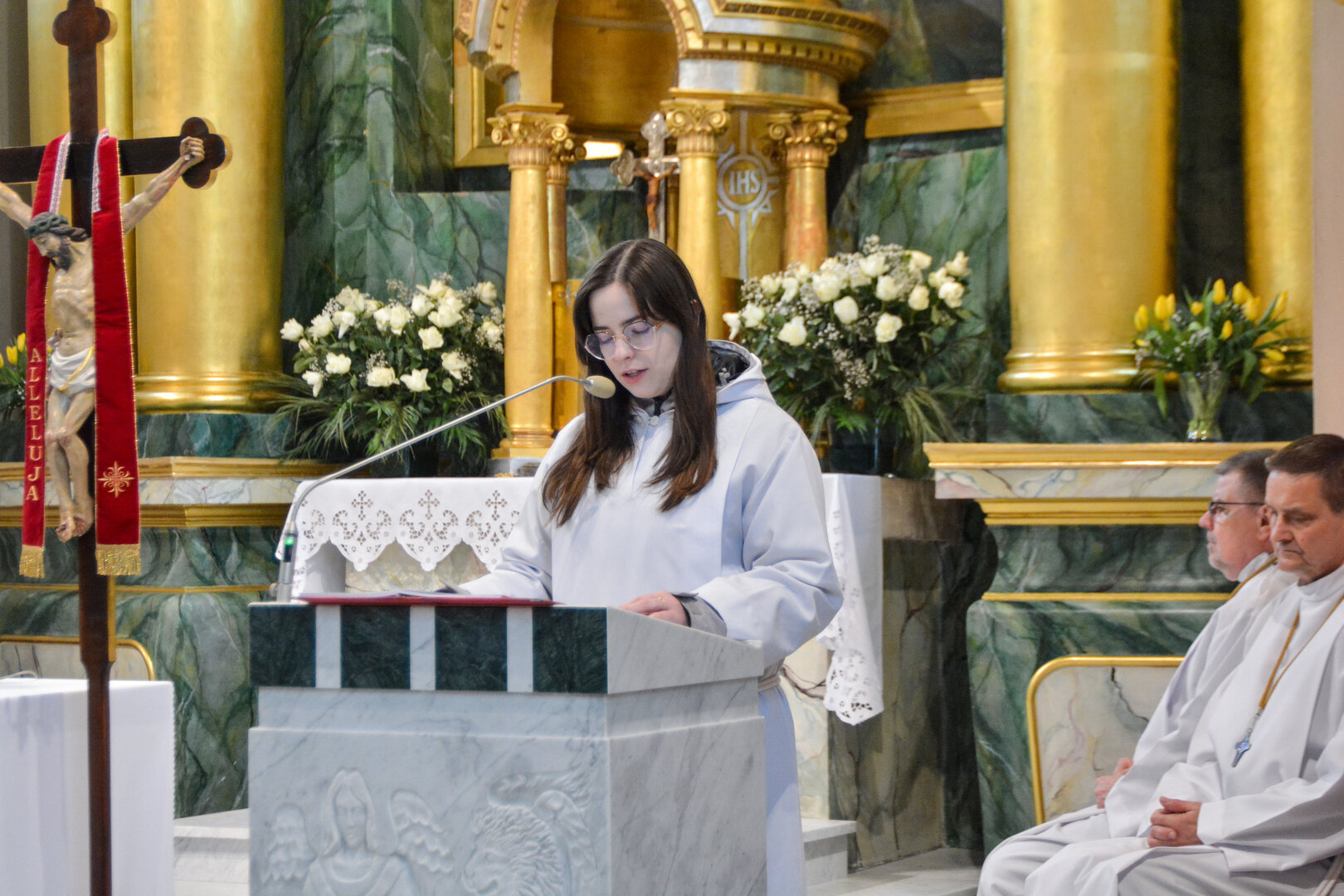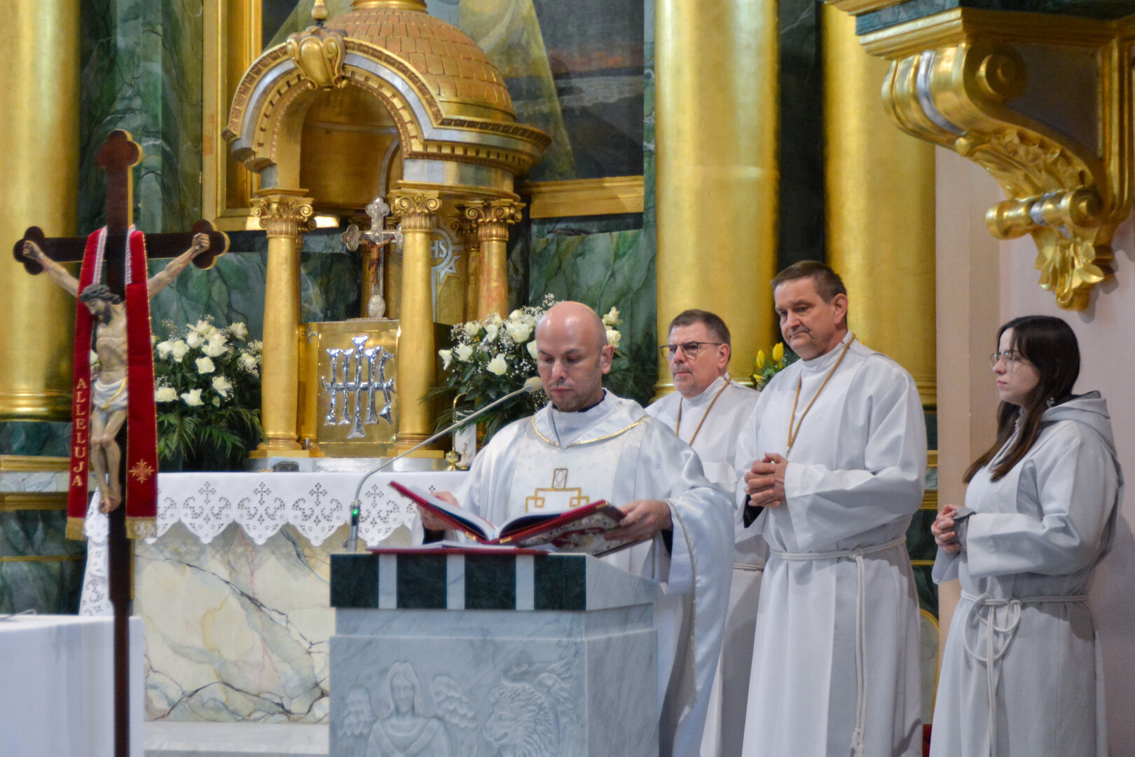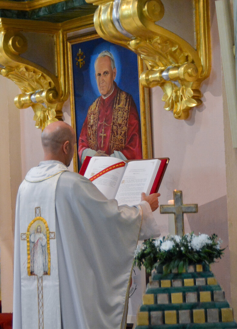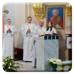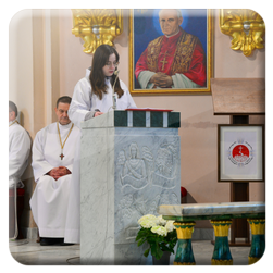 W procesji wejścia, lektorka niosła przed celebransem księgę Ewangelii, którą złożyła na ołtarzu. Ks. Daniel Nejman, celebrujący Mszę św., zwrócił się do wiernych tymi słowami: