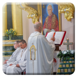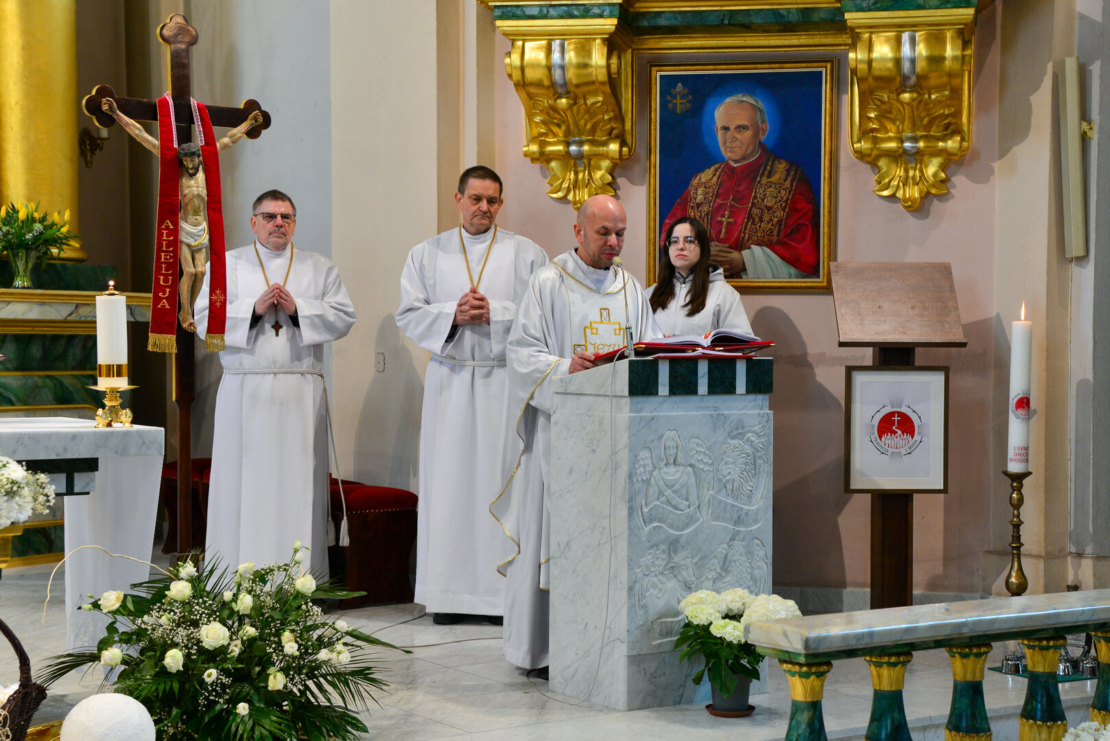 Podczas Mszy Świętej o godz. 12:30, w naszym kościele, nastąpiło rozpoczęcie okresu synodalnego w parafii. W widocznym miejscu przygotowano pulpit pod Ewangeliarz, świecę oraz logo I Synodu Diecezji Bydgoskiej, które będą wystawione podczas trwania Synodu diecezjalnego.