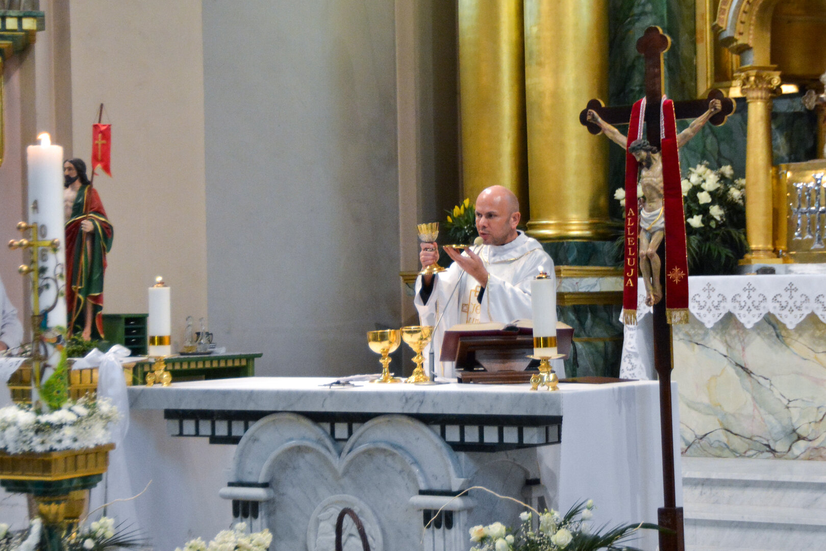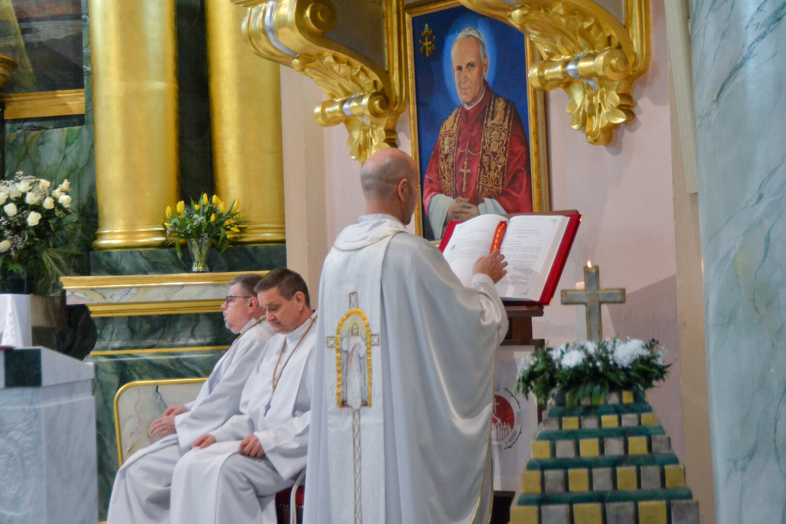 Wyeksponowana księga Ewangelii, a także specjalna świeca