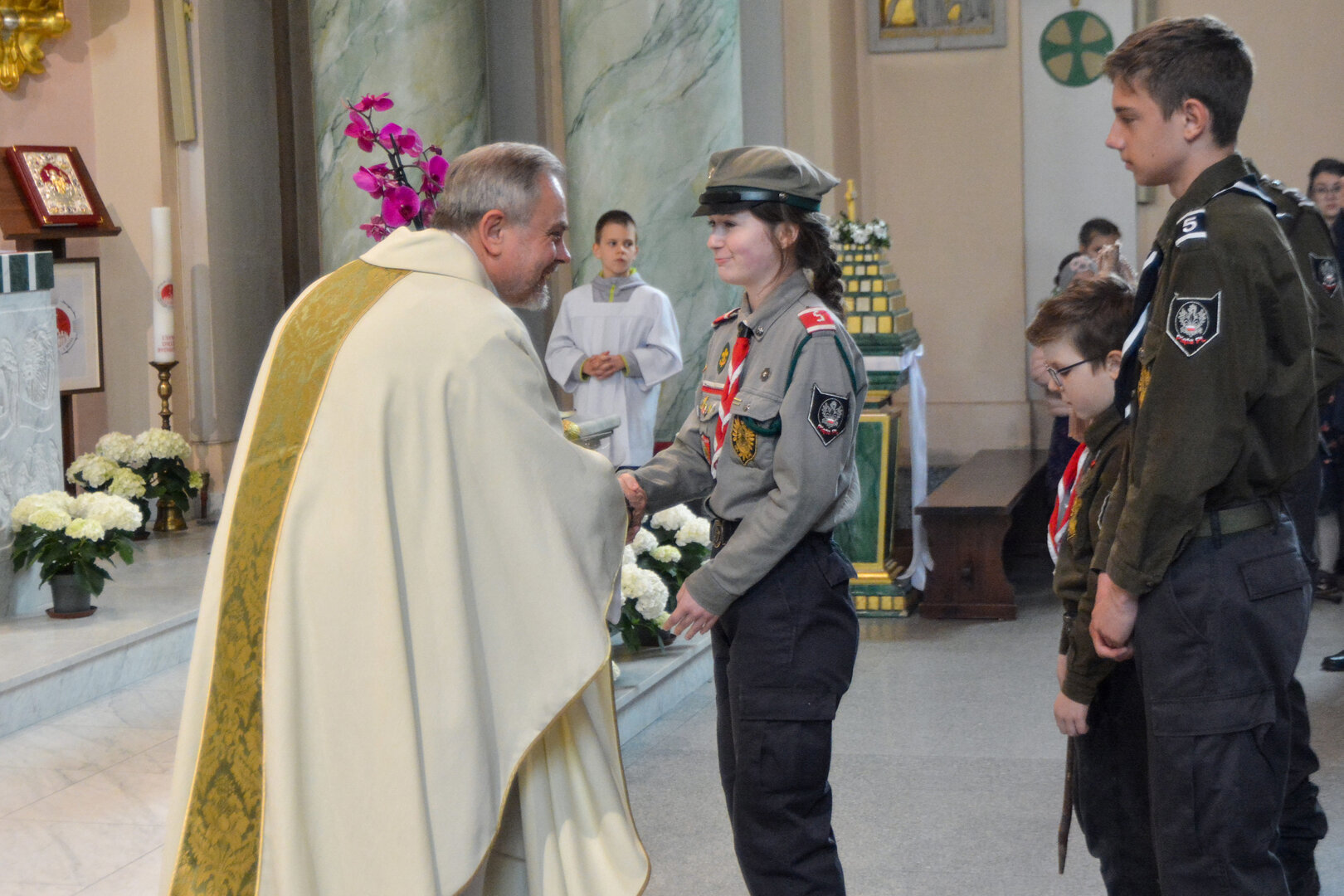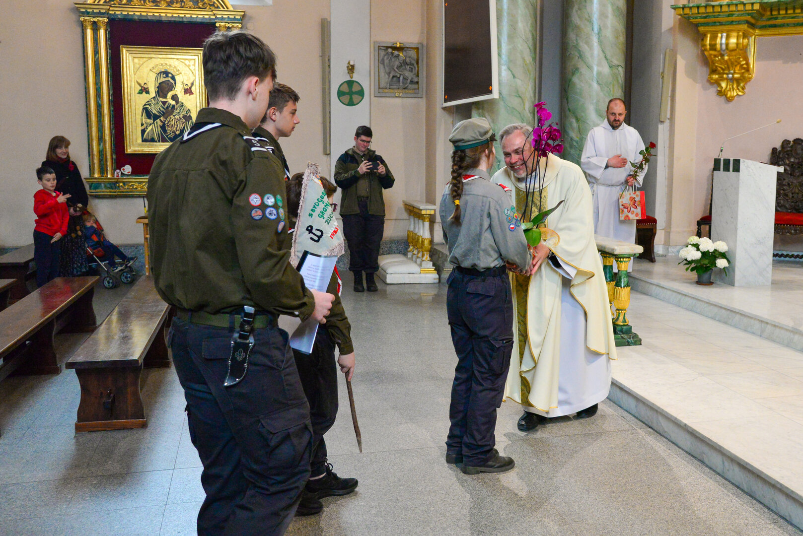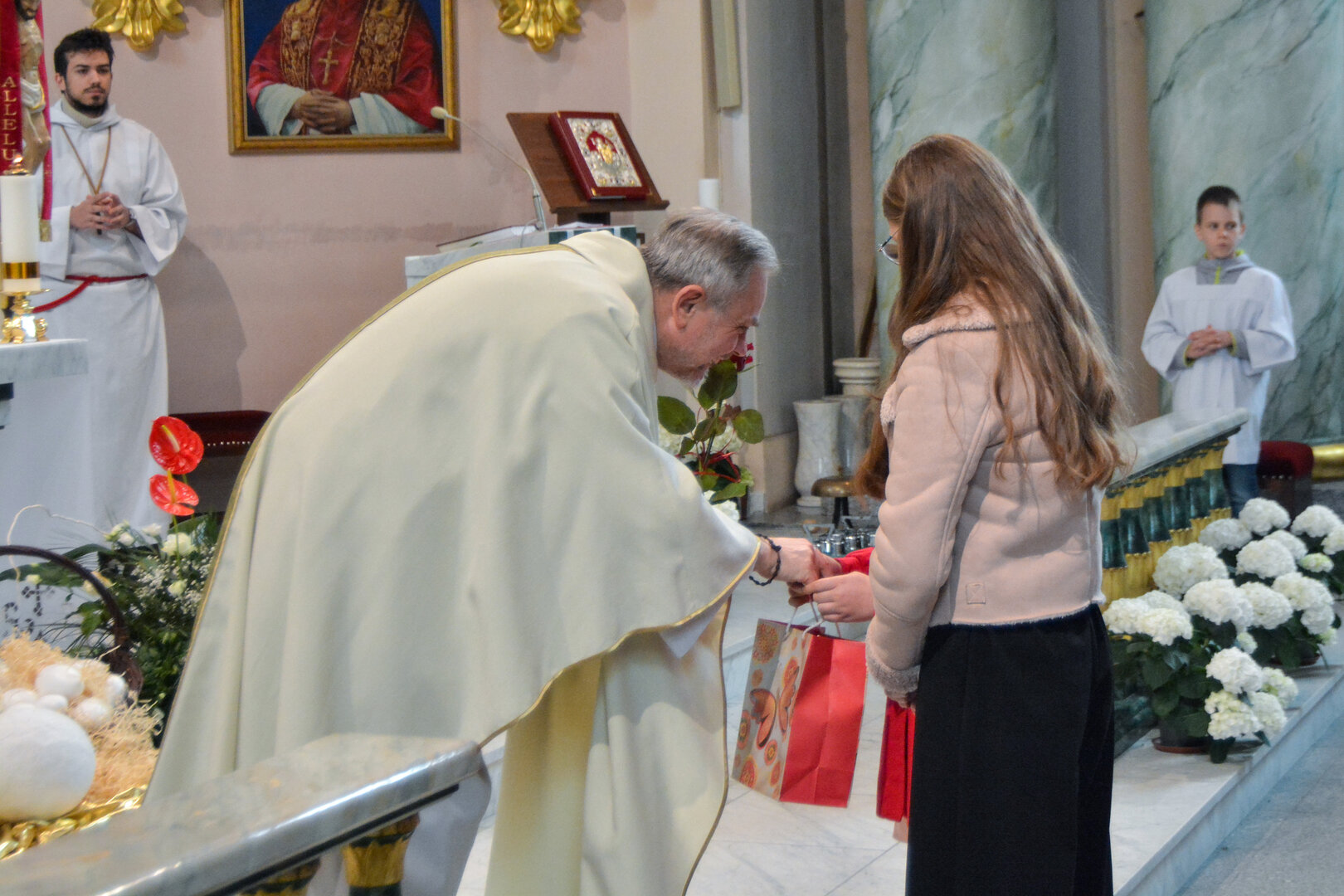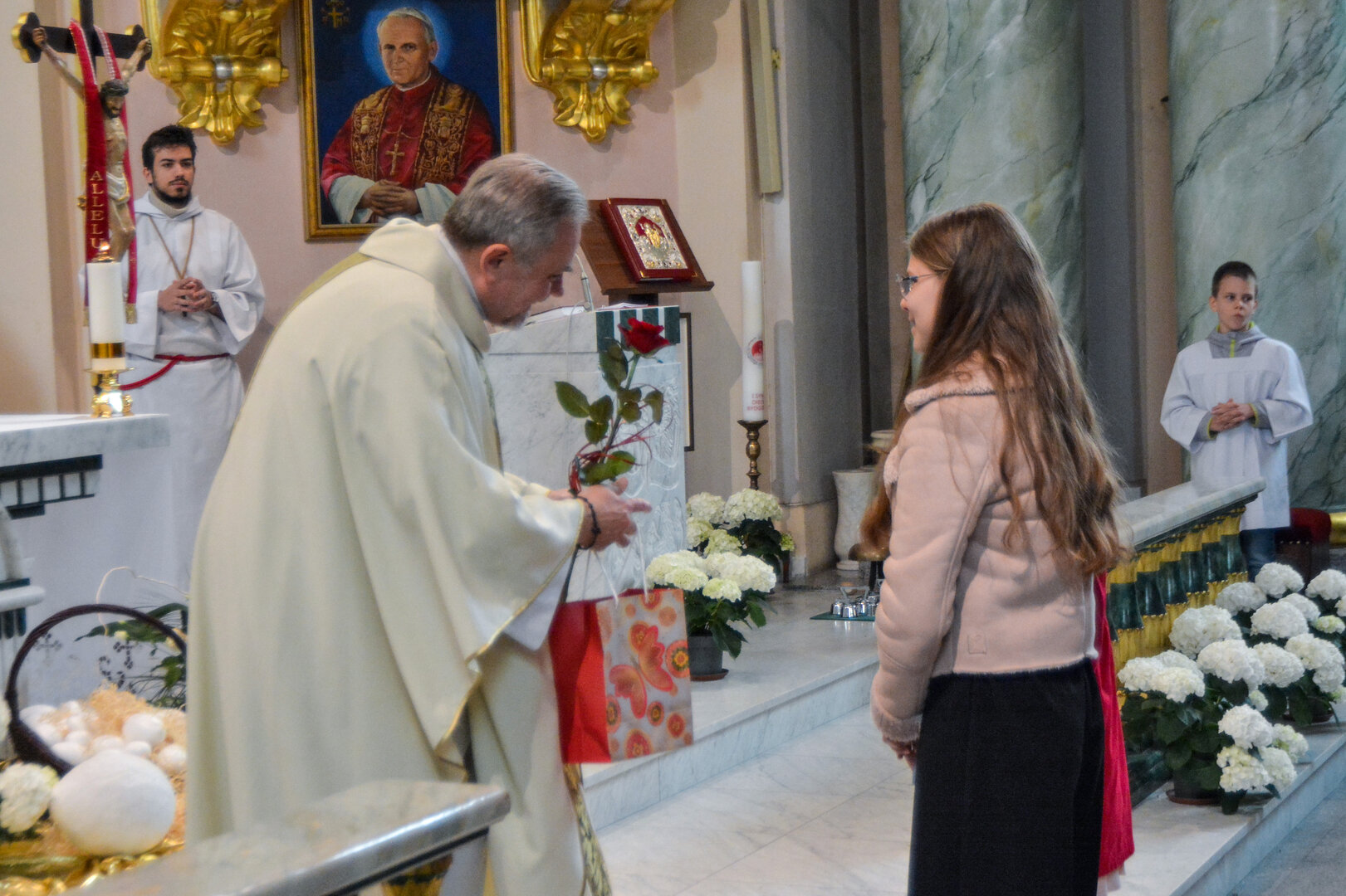 Ks. Jerzy zrewanżował się pysznymi cukierkami.