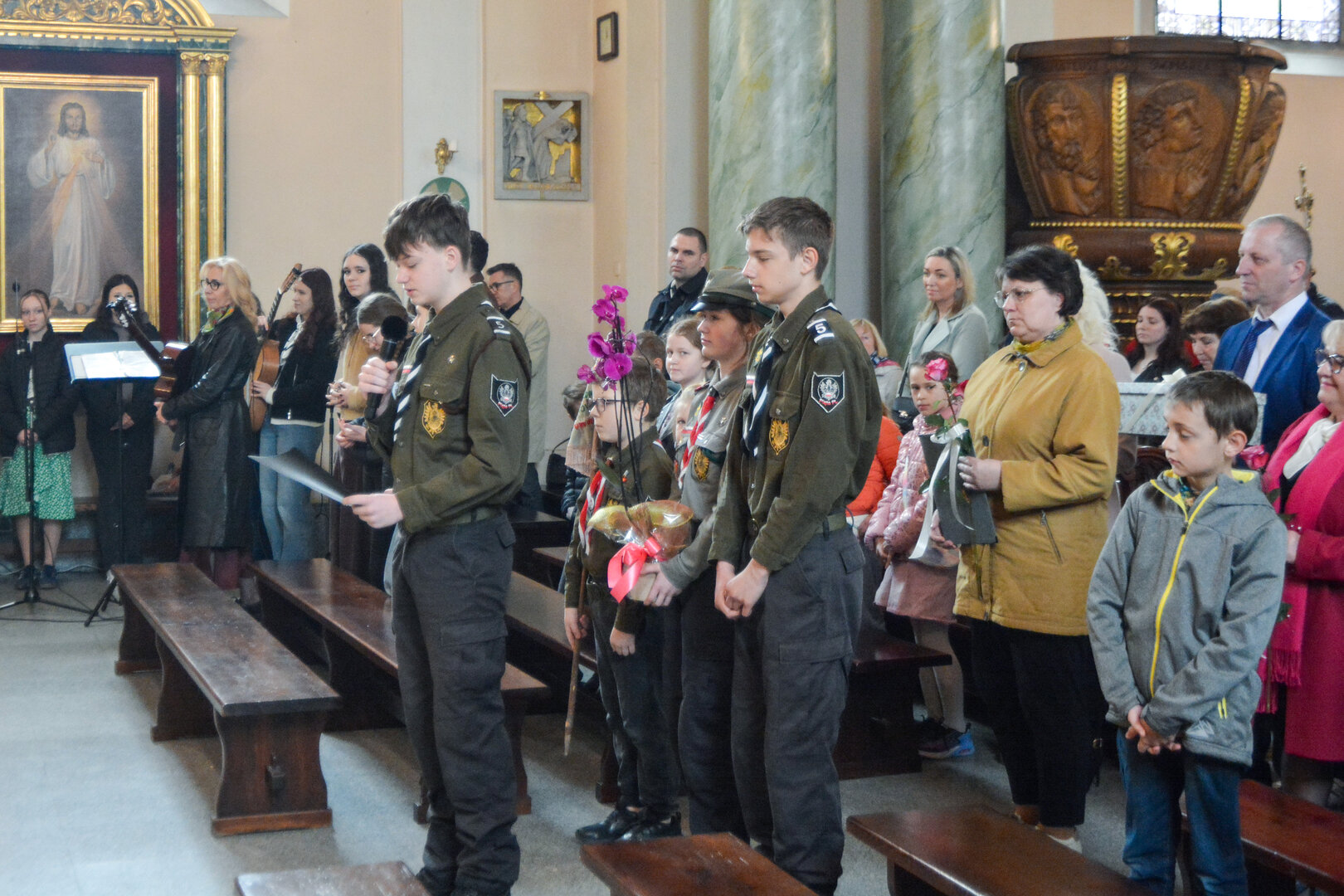 Muzyczne życzenia w wykonaniu Scholi św. Mikołaja.