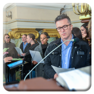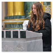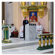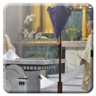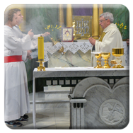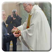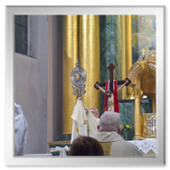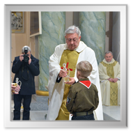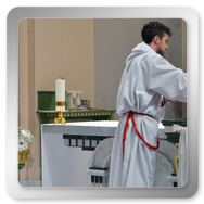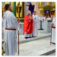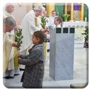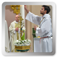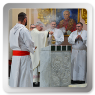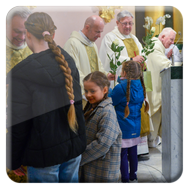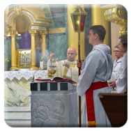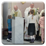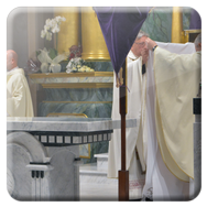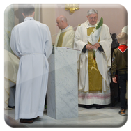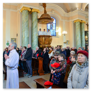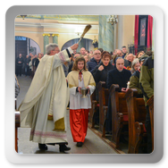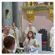 W czasie liturgii chrzcielnej kapłan kropi wiernych poświęconą wodą.
