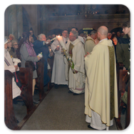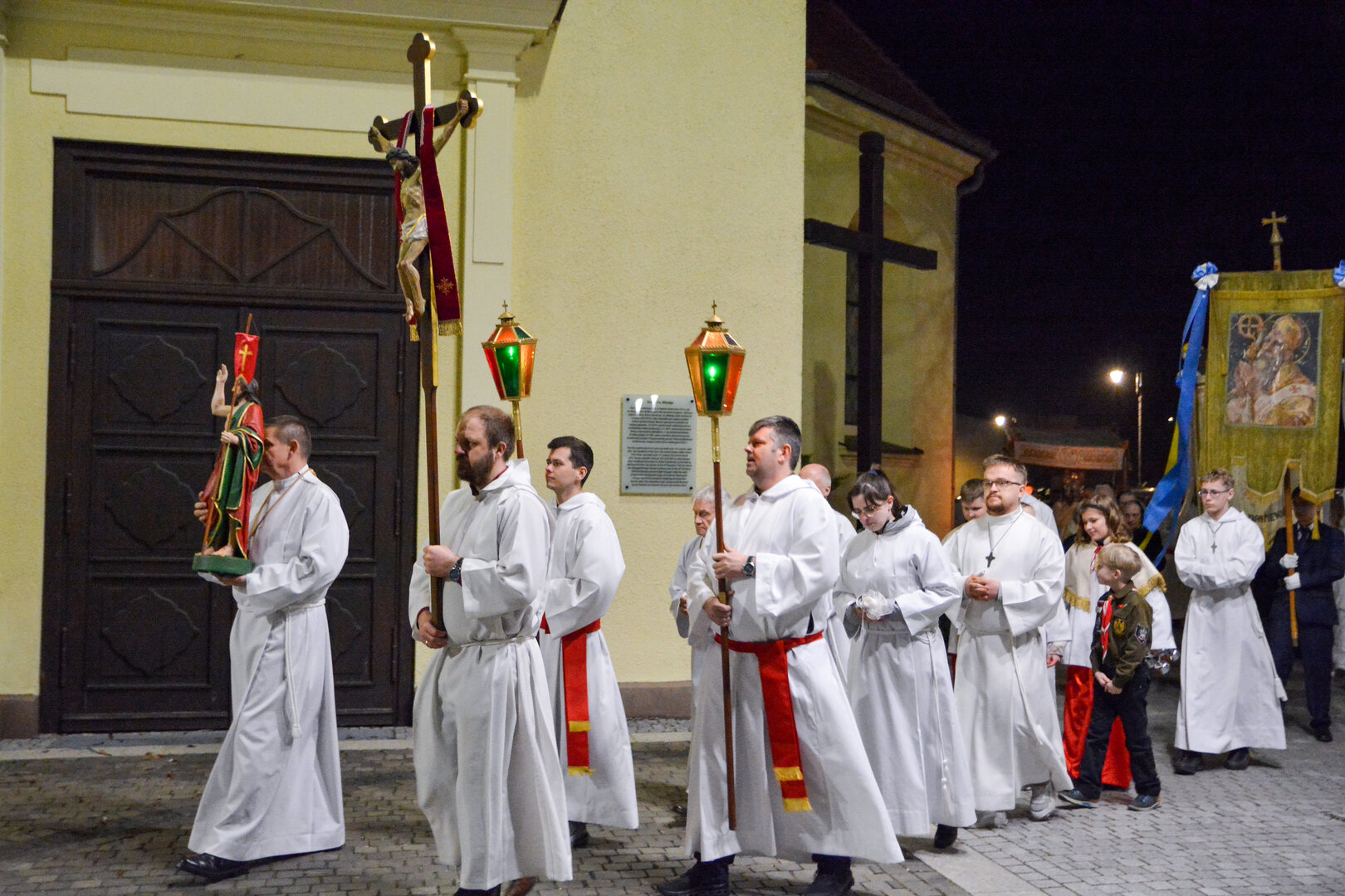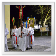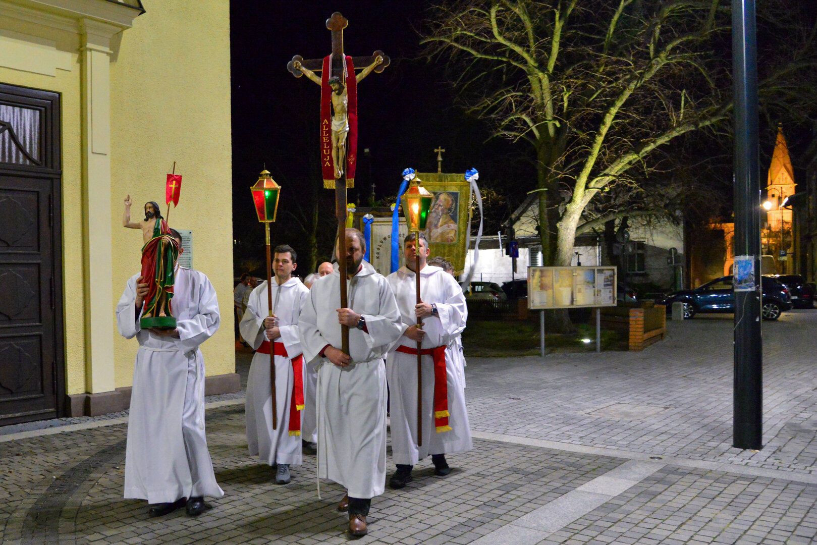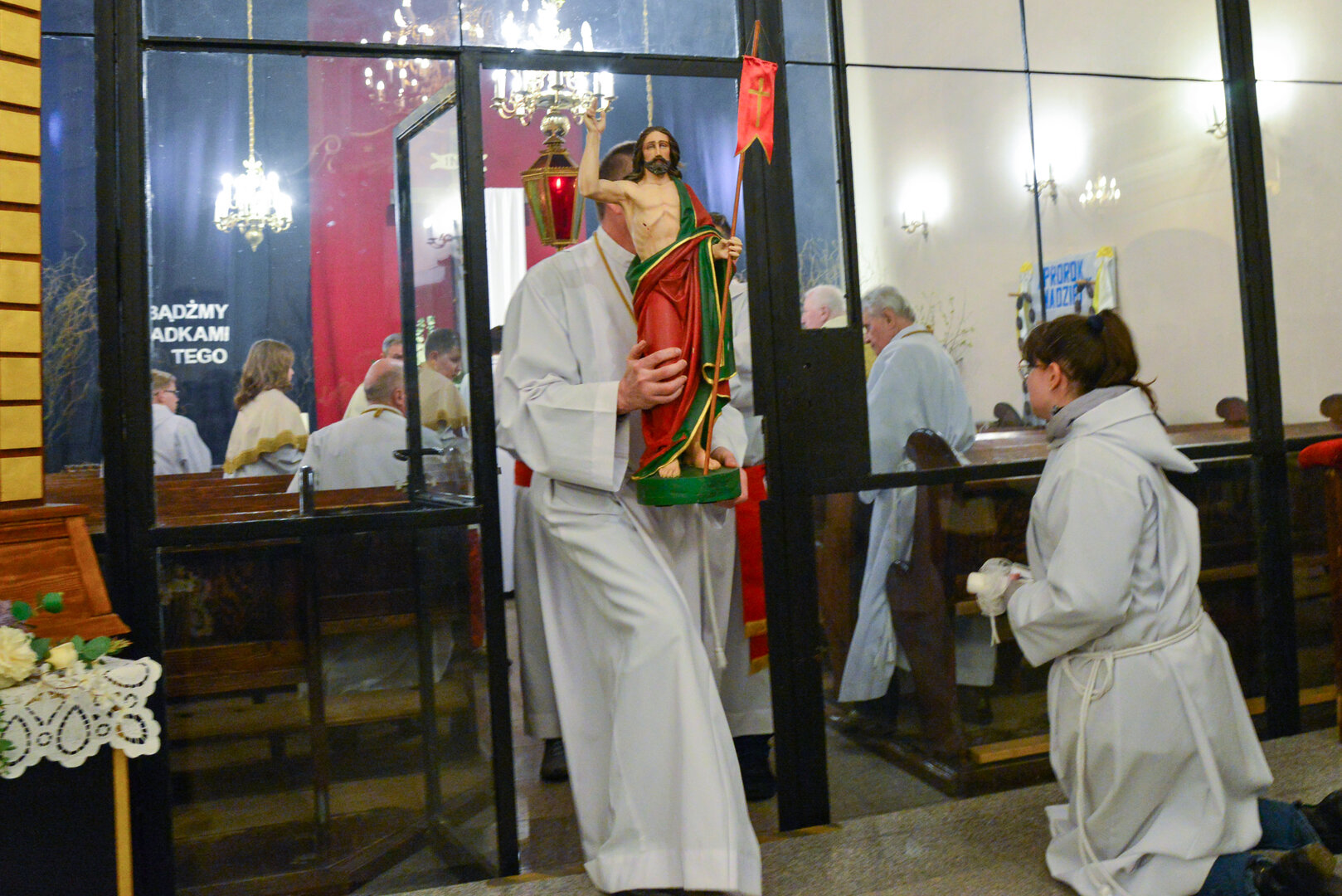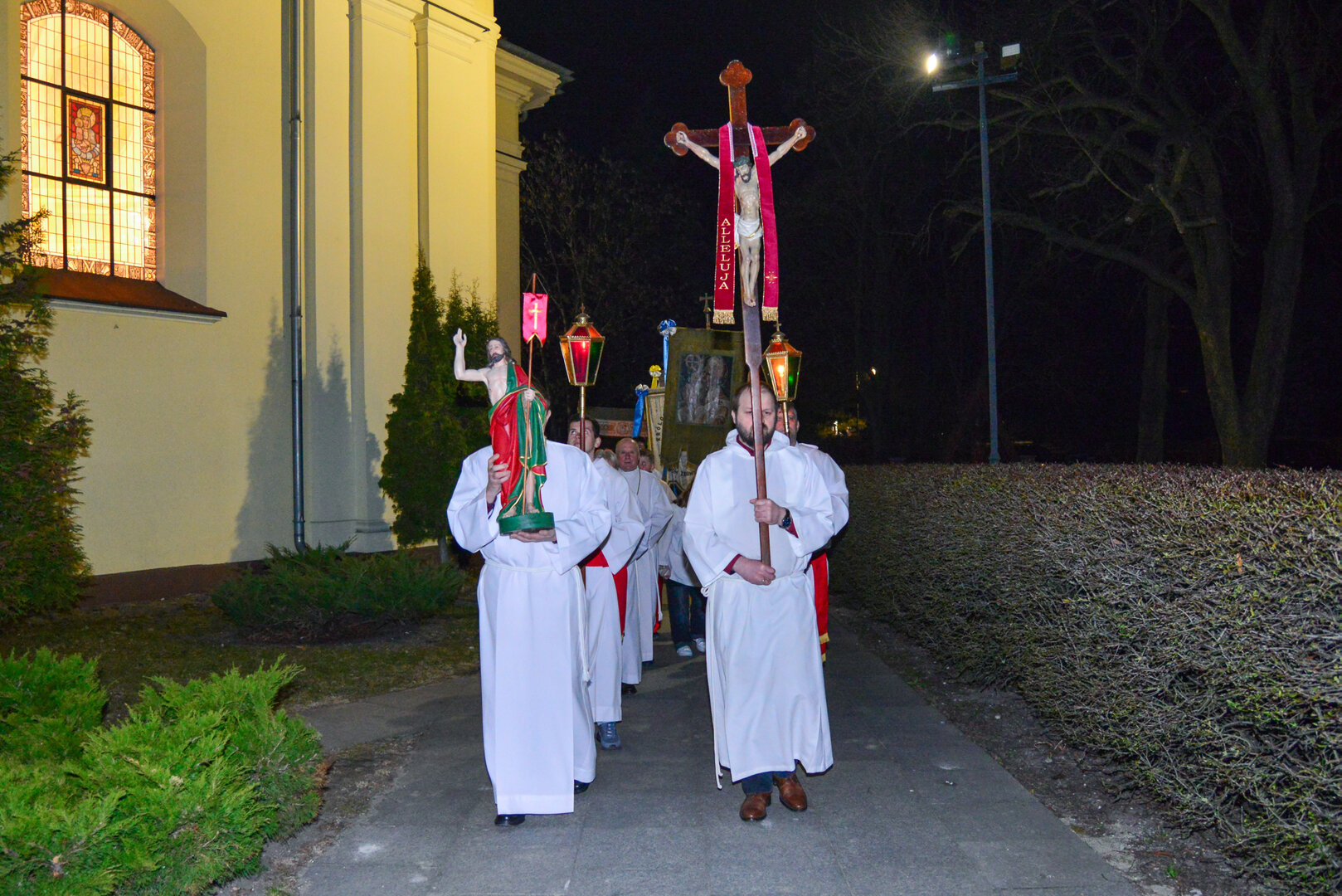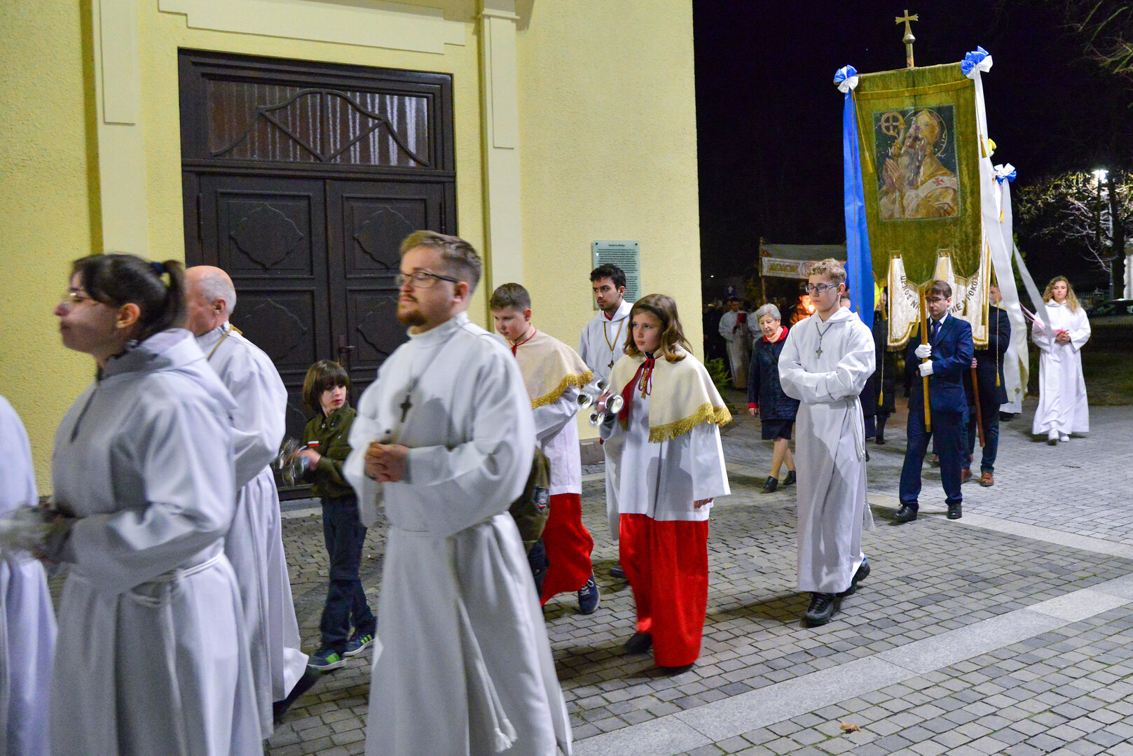 Następnie procesja wchodzi do ciemnego kościoła. Na przedzie wnoszony jest paschał. Podobnie jak synowie Izraela nocą szli za przewodem słupa ognia, tak chrześcijanie idą w ślady zmartwychwstałego Chrystusa. Światło od świecy paschalnej stopniowo rozszerza się na świece trzymane przez wiernych.