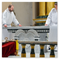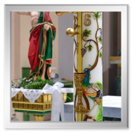 – pierwszą jest liturgia światła, która rozpoczyna się przed świątynią od obrzędu poświęcenia ognia i paschału – woskowej świecy symbolizującej Chrystusa Zmartwychwstałego, „Światłość Świata”.