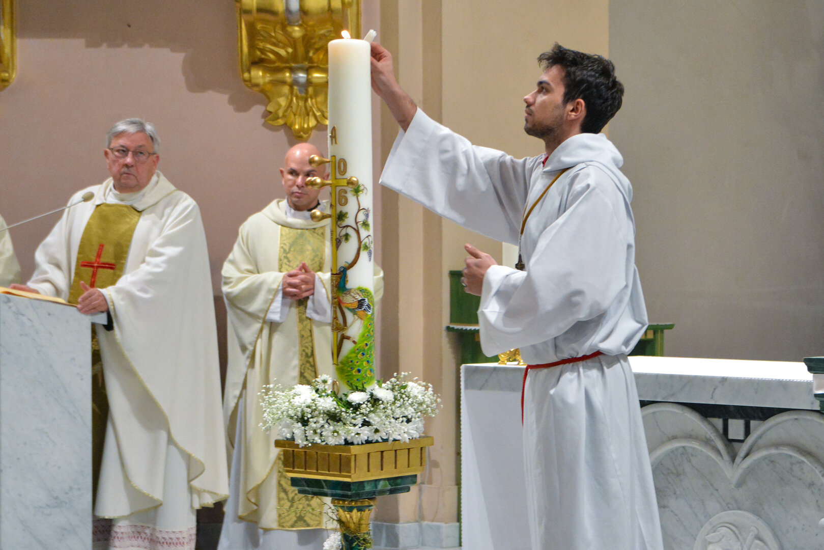 Następnie śpiewa się Exsultet – orędzie paschalne. Jest to starożytny hymn wielbiący wspaniałość Bożego dzieła odkupienia świata – od grzechu Adama aż do zbawienia, które dokonało się w Chrystusie.